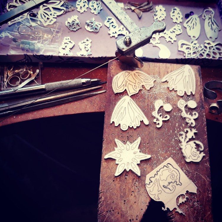 Chaque pièce est réalisée à la main en utilisant des techniques traditionnelles. Je travaille principalement l’argent et l’or et j’aime beaucoup utiliser les pierres précieuses. Il m’arrive aussi de travailler avec des matières que l’on ne s’attend pas à voir dans un bijou (caillou intéressant, coquillage, morceau de bois…) ; parce que pour moi ce n’est pas vraiment la matière utilisée qui rend l’objet précieux et unique, c’est la signification qu’il prend pour celui qui l’offre ou le porte.