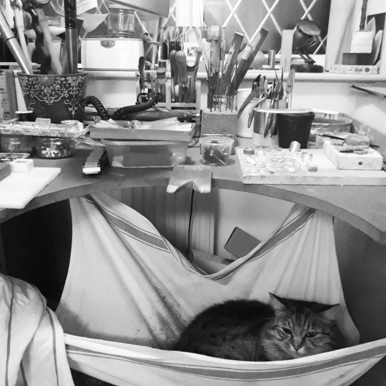 Je modèle le métal telle une alchimiste pour créer des bijoux vibrant de poésie, puisant mon inspiration dans l’art, les collections archéologiques, et les divers pays où j’ai voyagé (Grèce, Thaïlande, Inde, Malaisie, Bornéo…). J’aime que mes créations aient une histoire à elles et j’aime aussi que cette histoire se transforme et change quand elles appartiennent à quelqu’un d’autre.