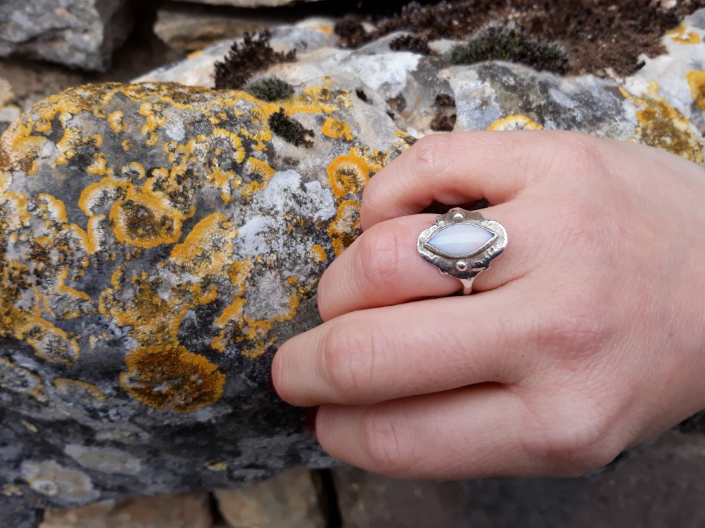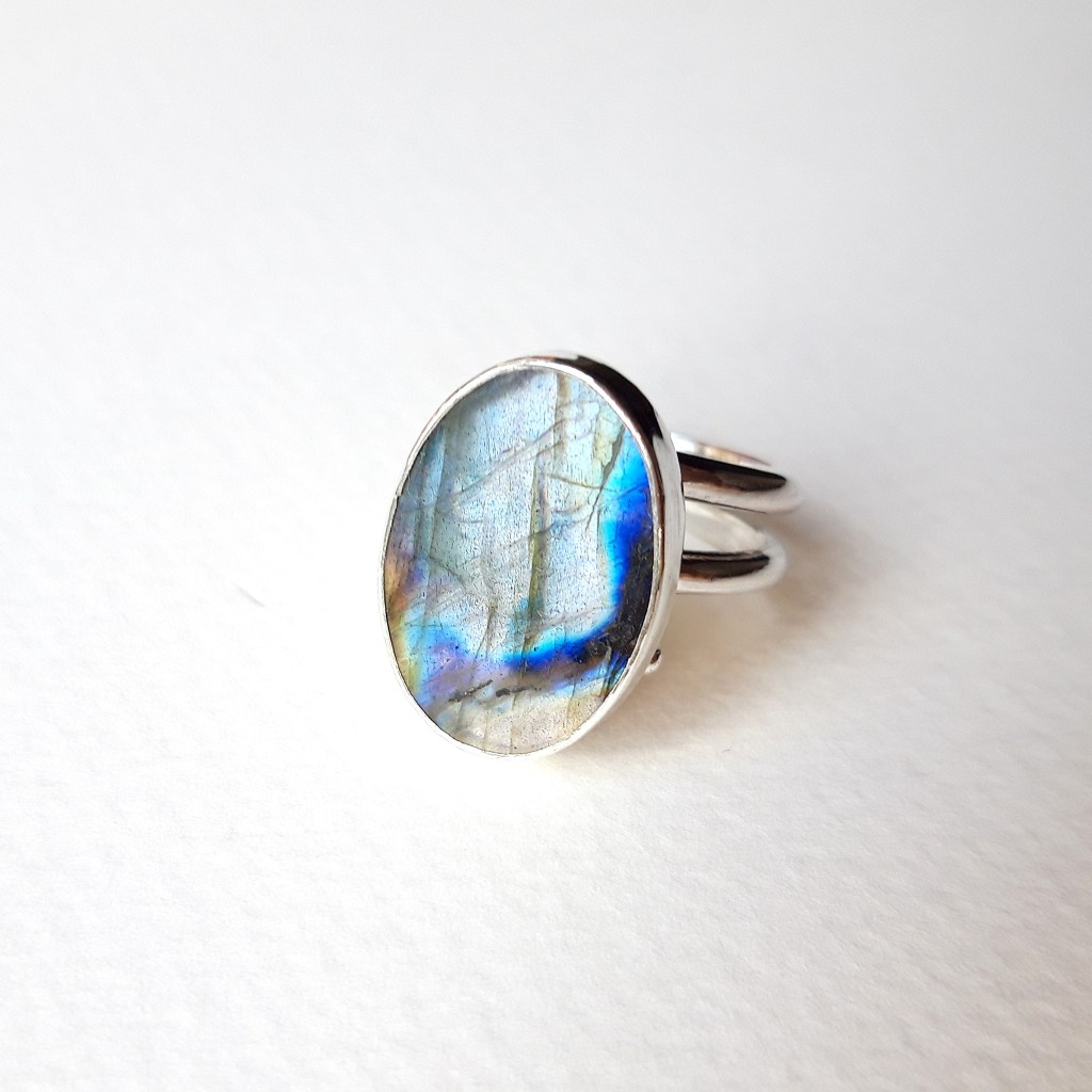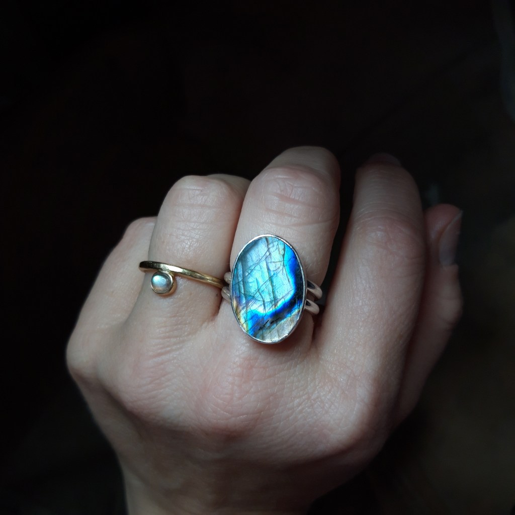 Bague ‘Au bord de la Mer’. Argent, labradorite.