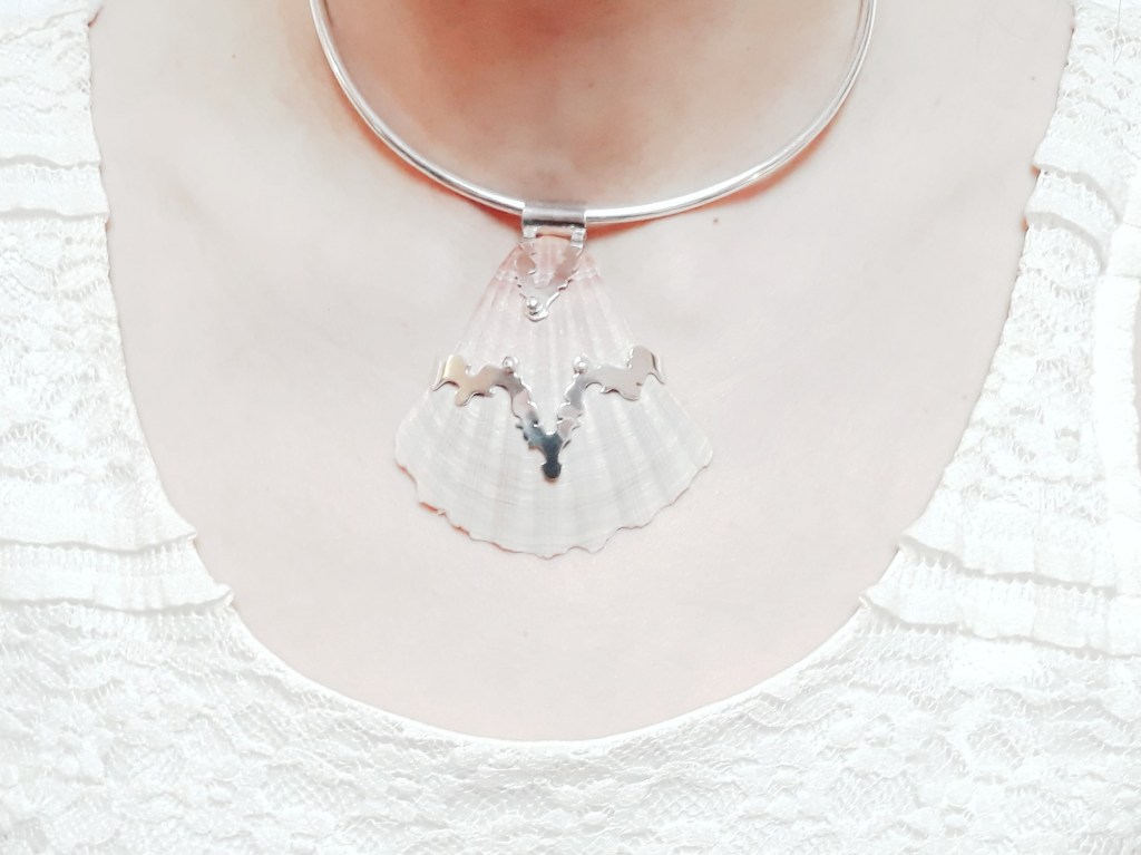 Collier ‘Coquillage Rose’. Argent, coquillage.