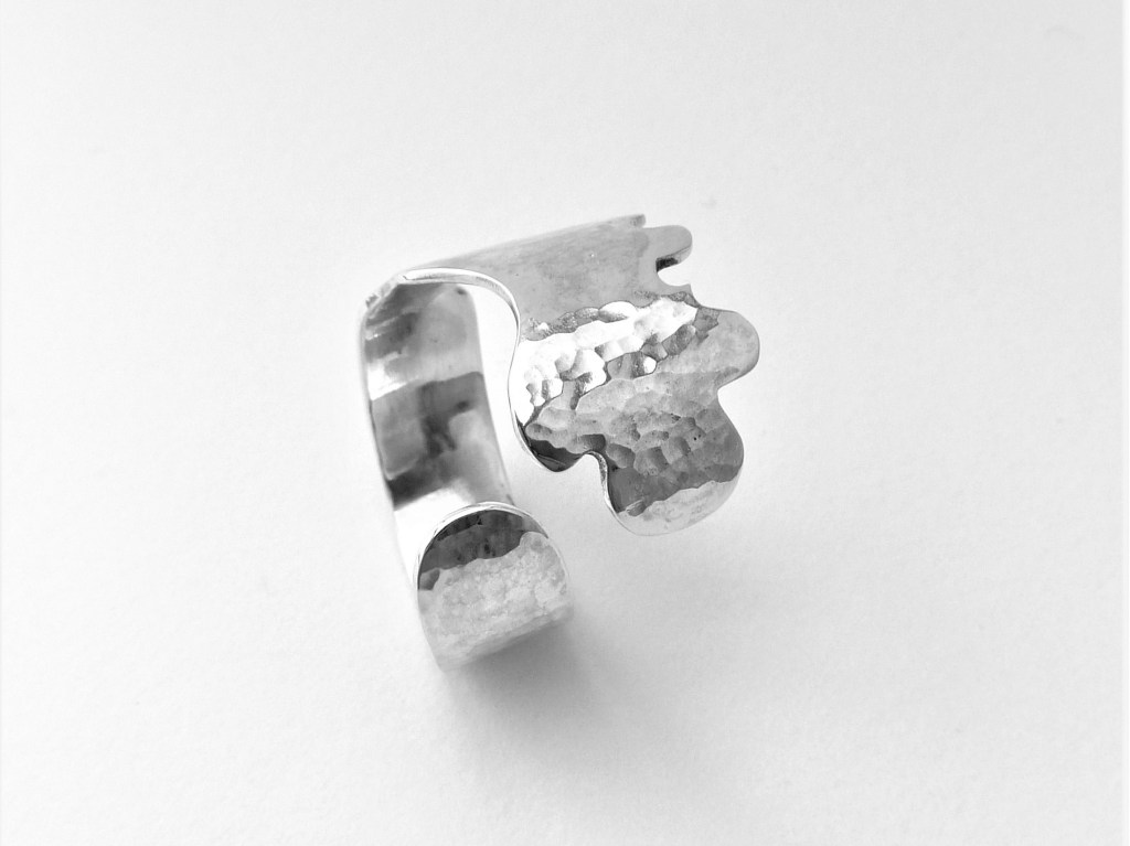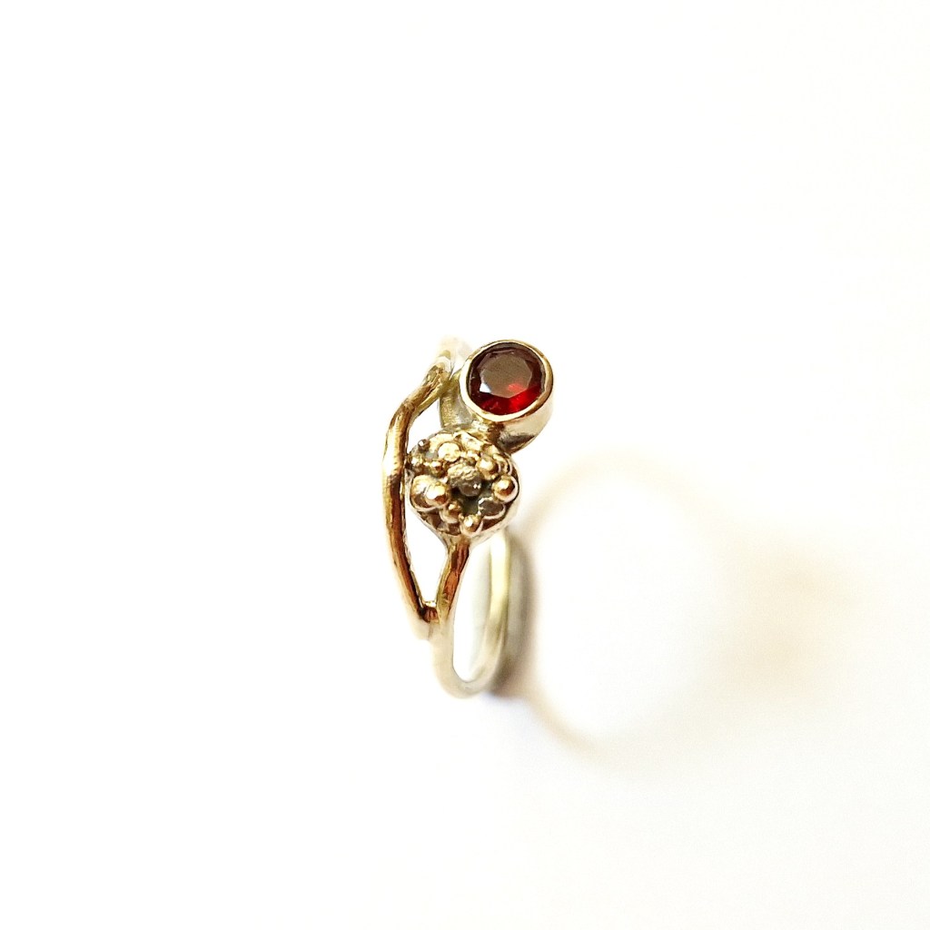 Bague ‘Fleur de Borneo’. Argent, grenat.