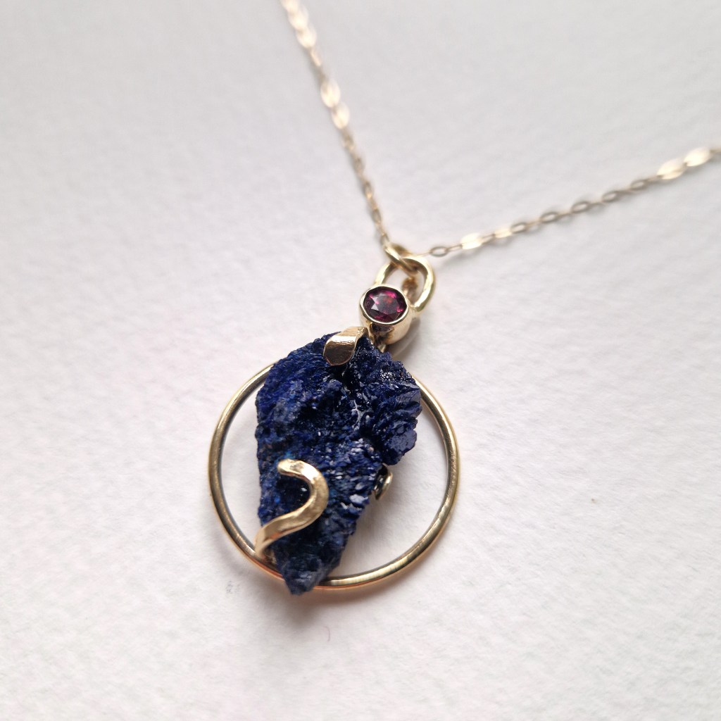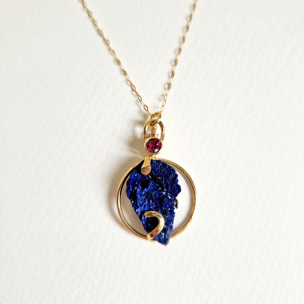 Collier ‘Autour de la Mediterranee’. Or, grenat, lapis lazuli.