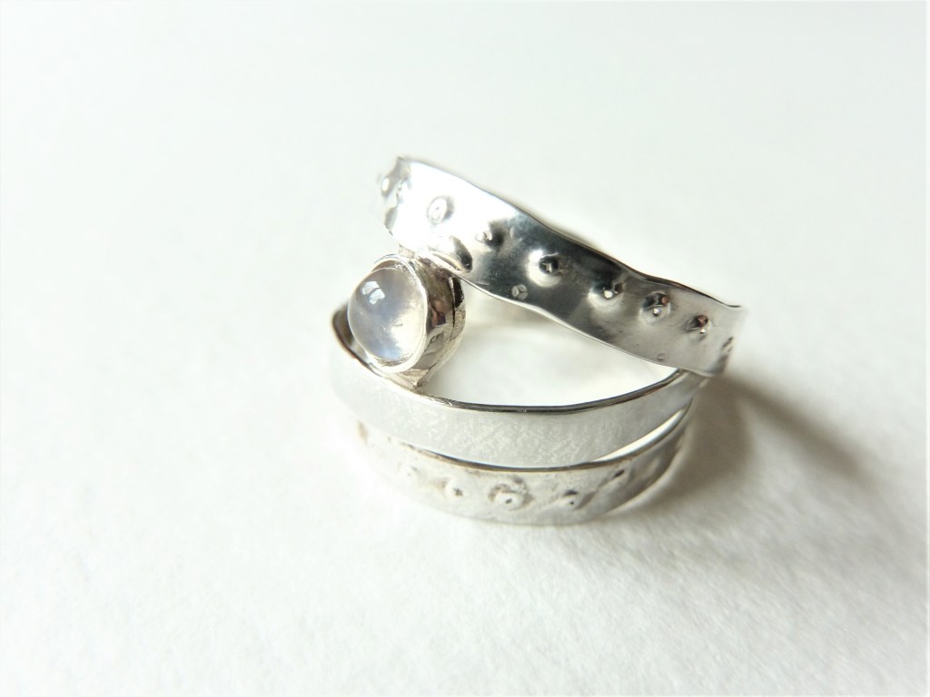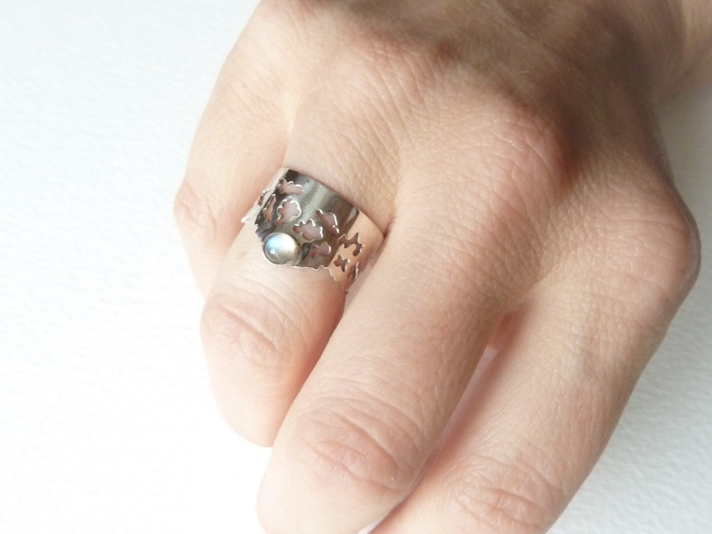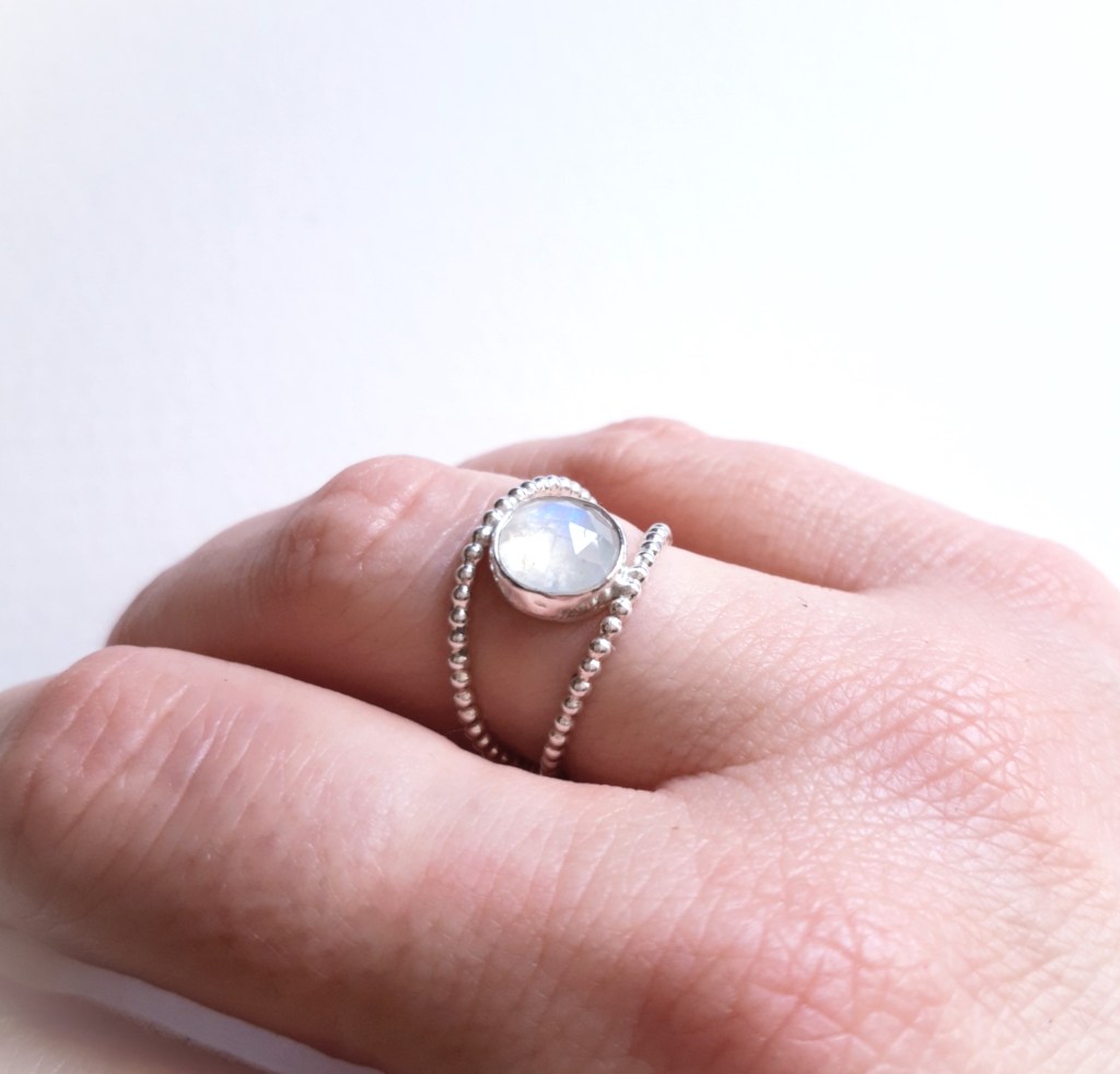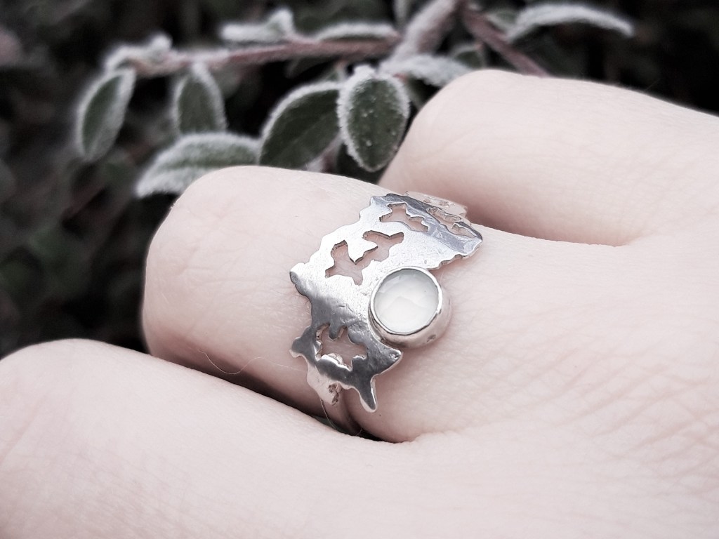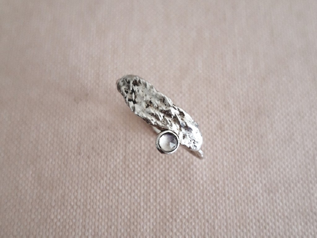 Bague ‘Regarde la-haut’. Argent, pierre de lune.