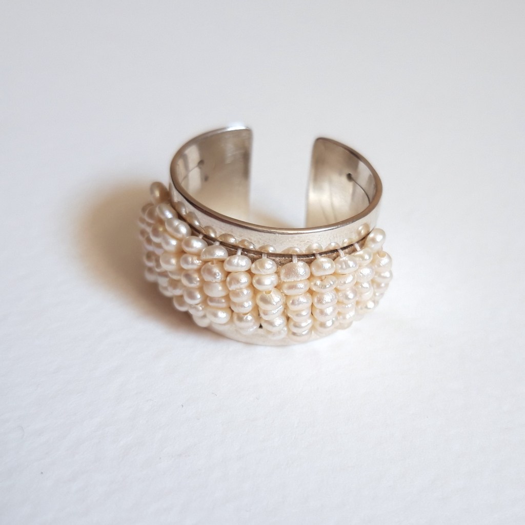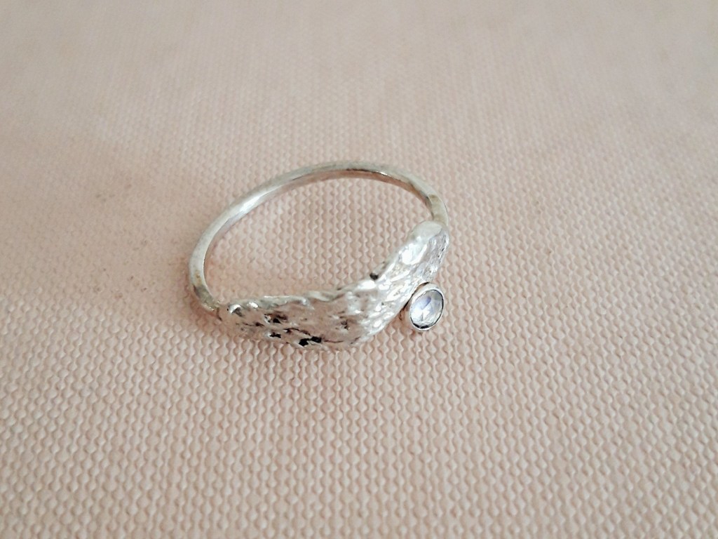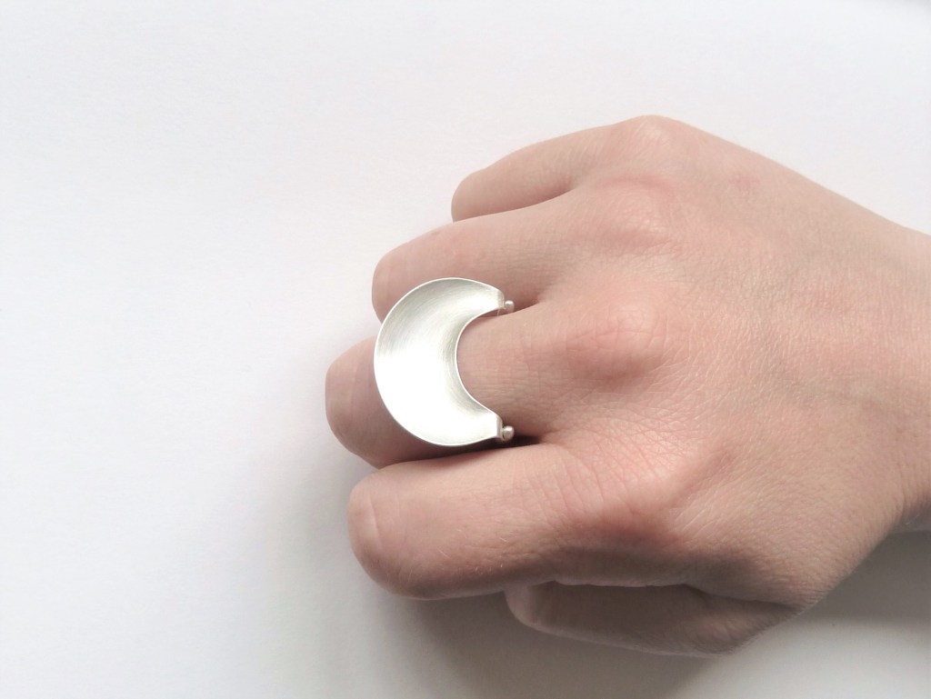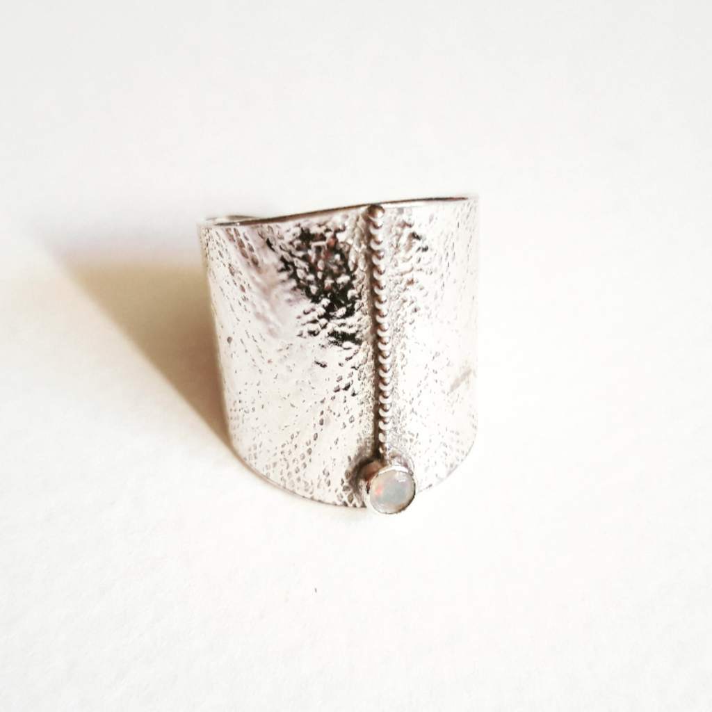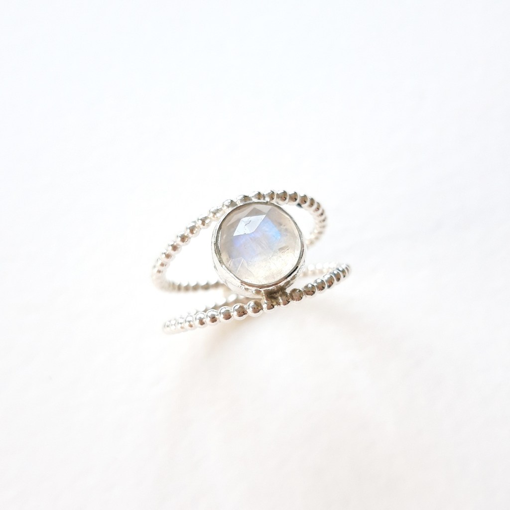 Bague ‘Regarde la-haut’. Argent, pierre de lune.