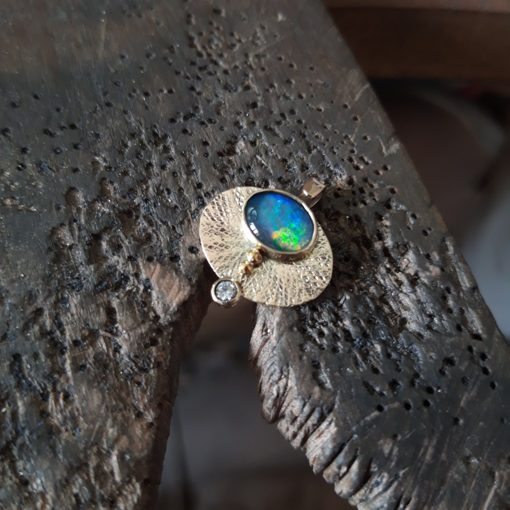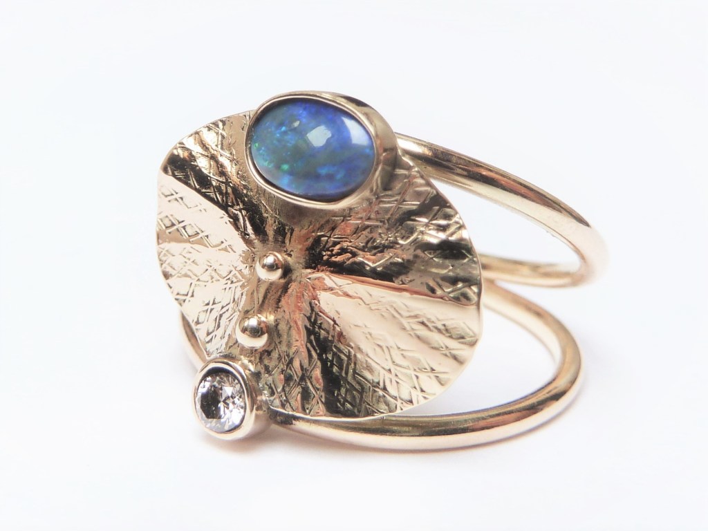 Bague ‘Mycenienne’. Or 9 ct, diamant et opal.