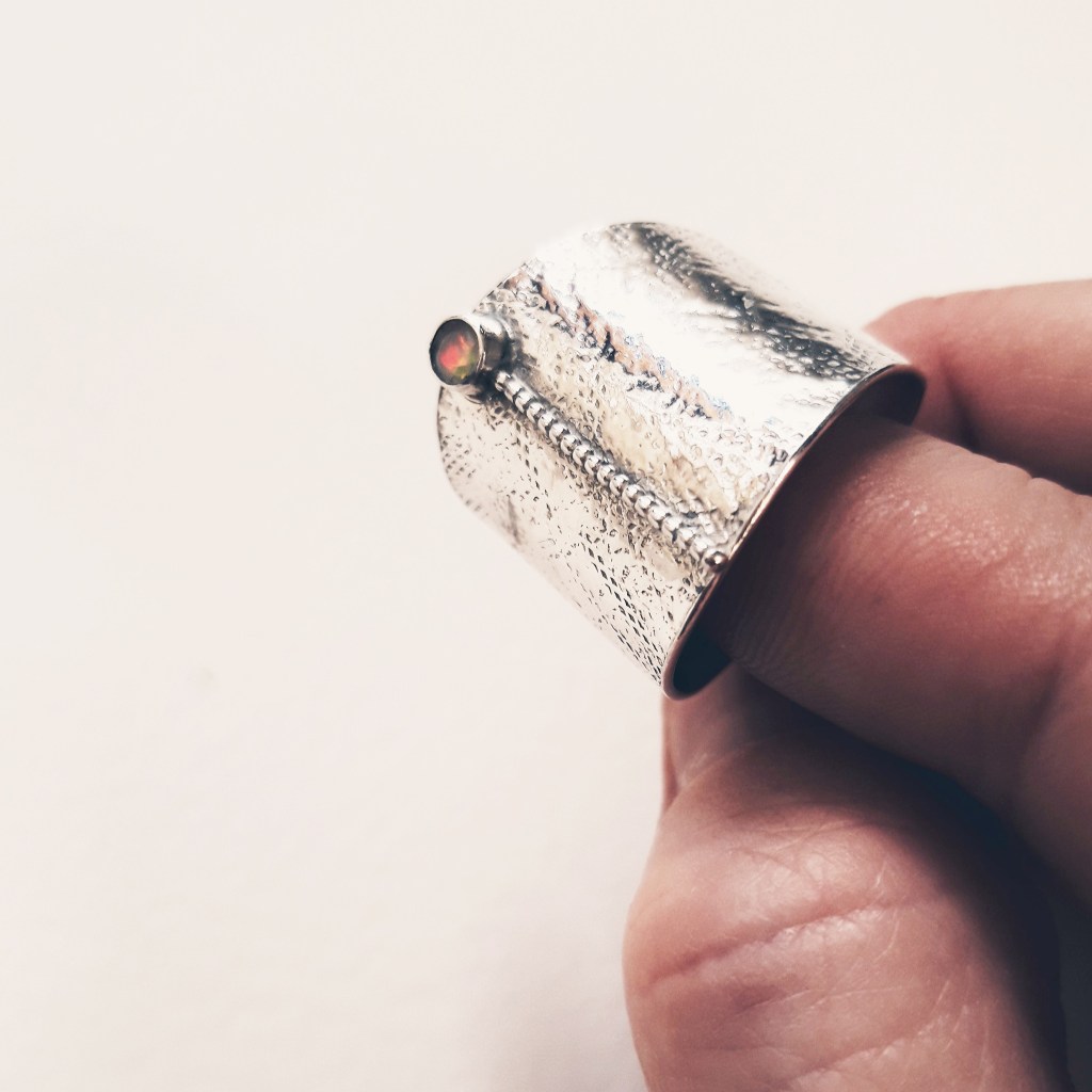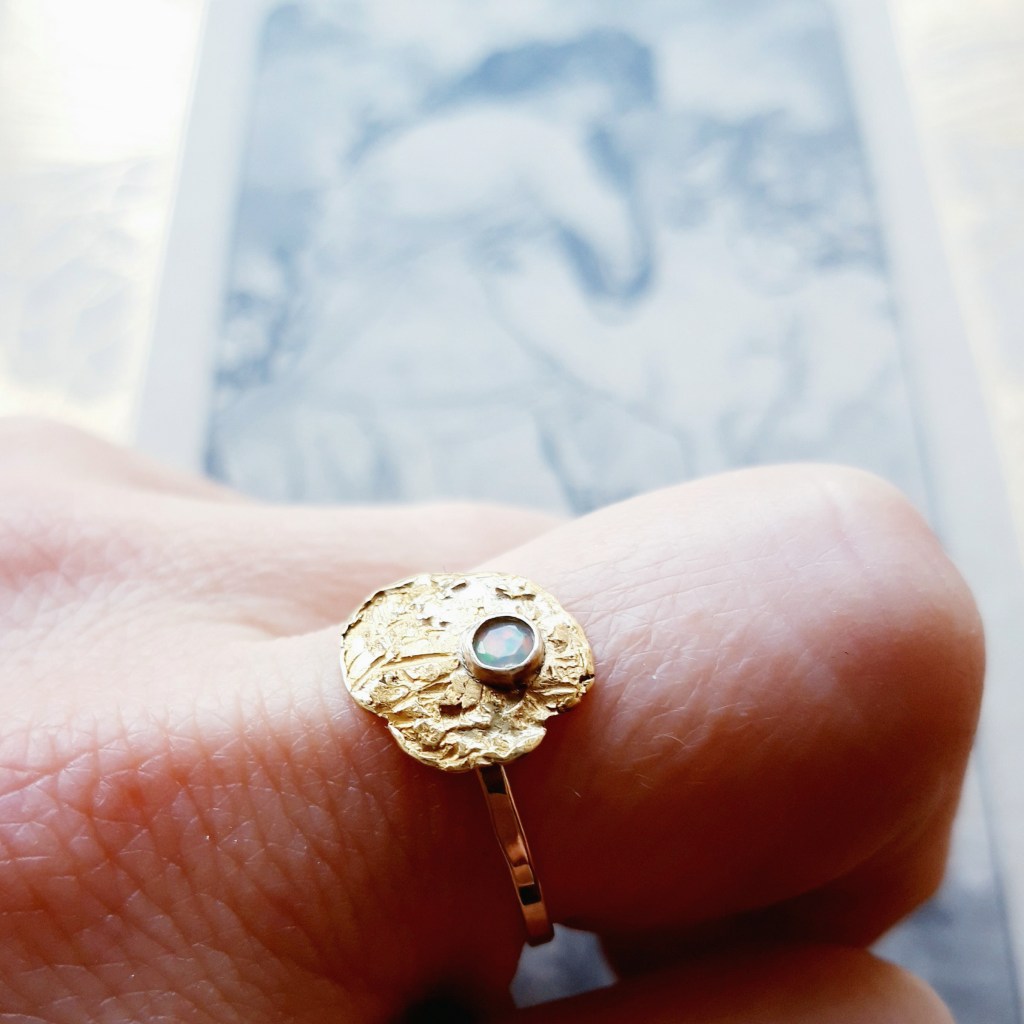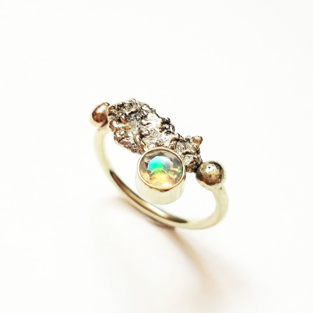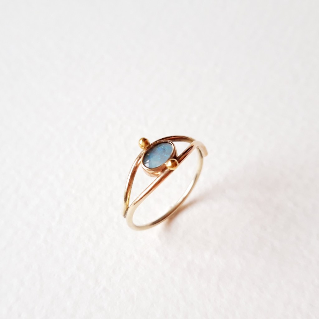 ‘Mycenae’ Ring.Sterling silver, gold dots, opal.