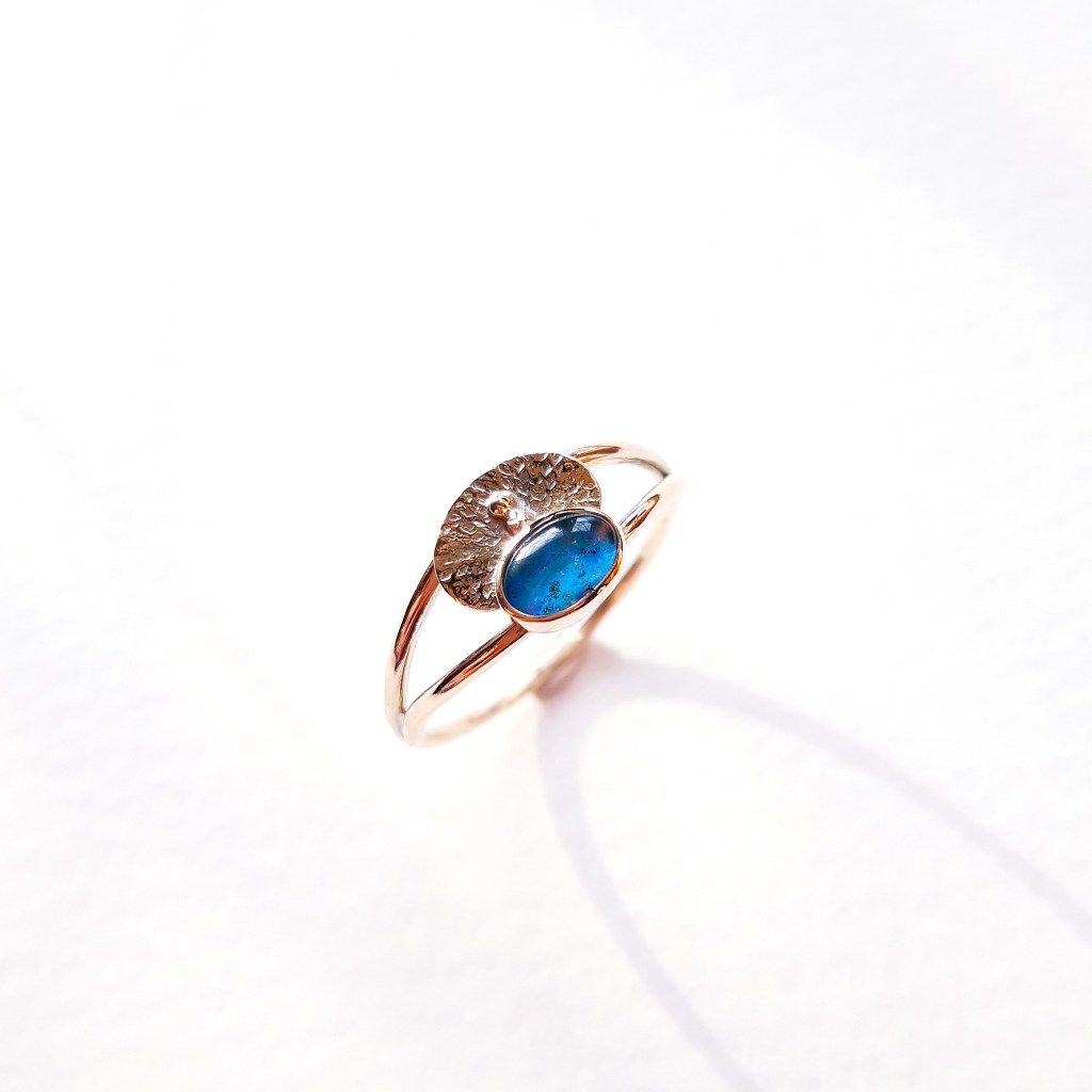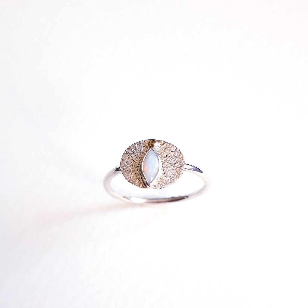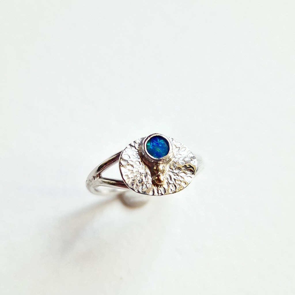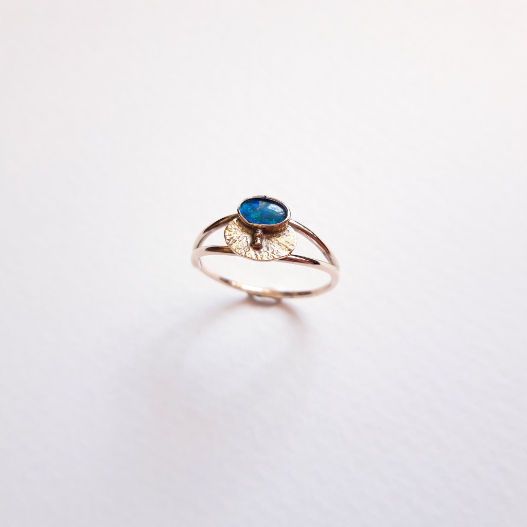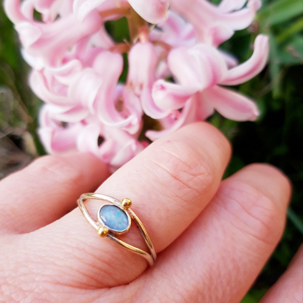 ‘Mycenae’ Ring.Sterling silver, gold dots, opal.