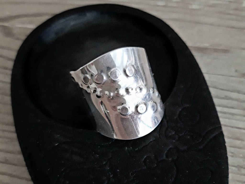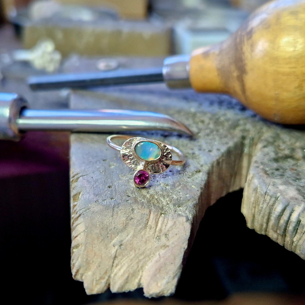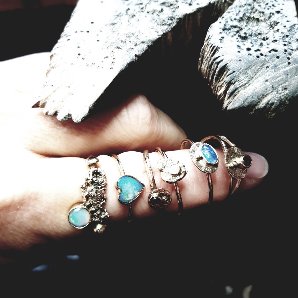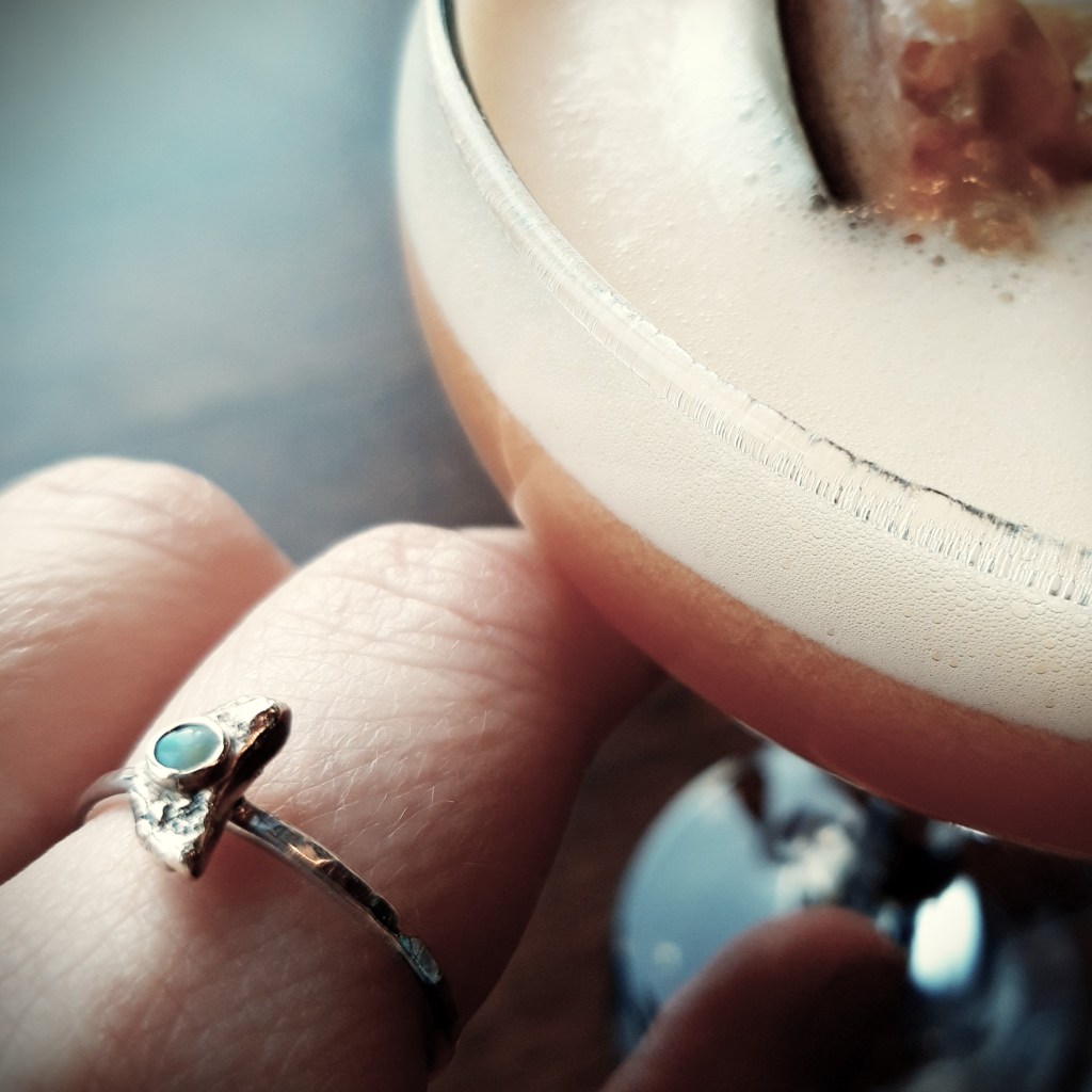 ‘Mycenae’ Ring.Sterling silver, gold dots, opal.