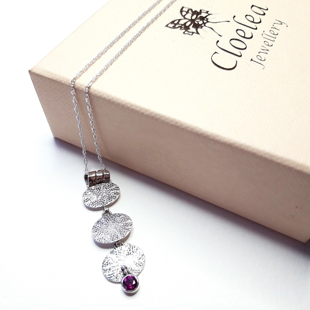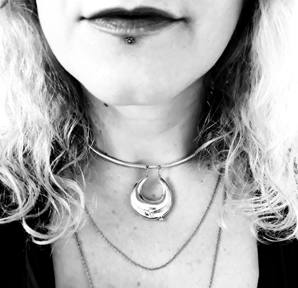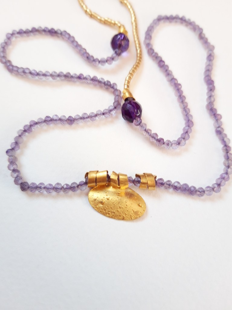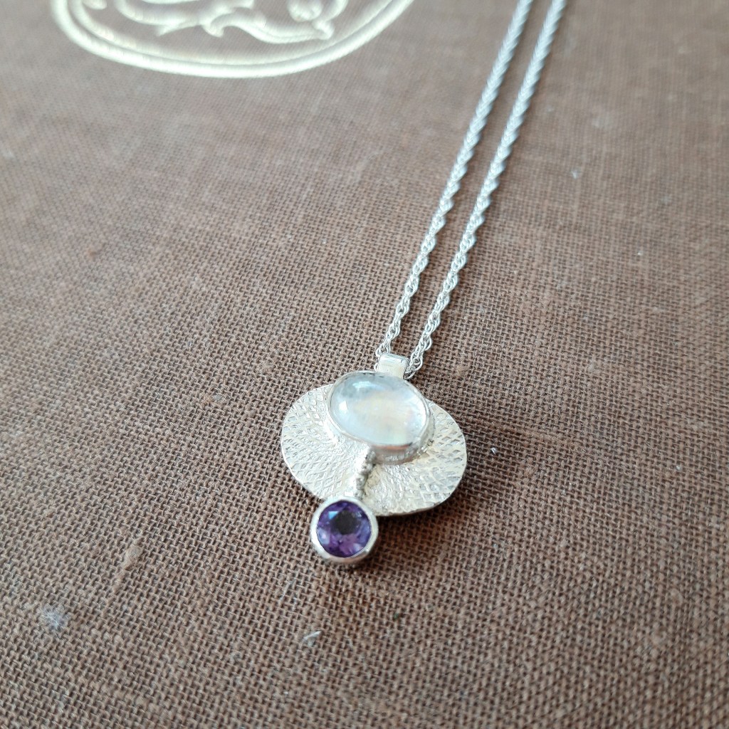 Collier ‘Mycenienne’. Argent, amethyste et pierre de lune.