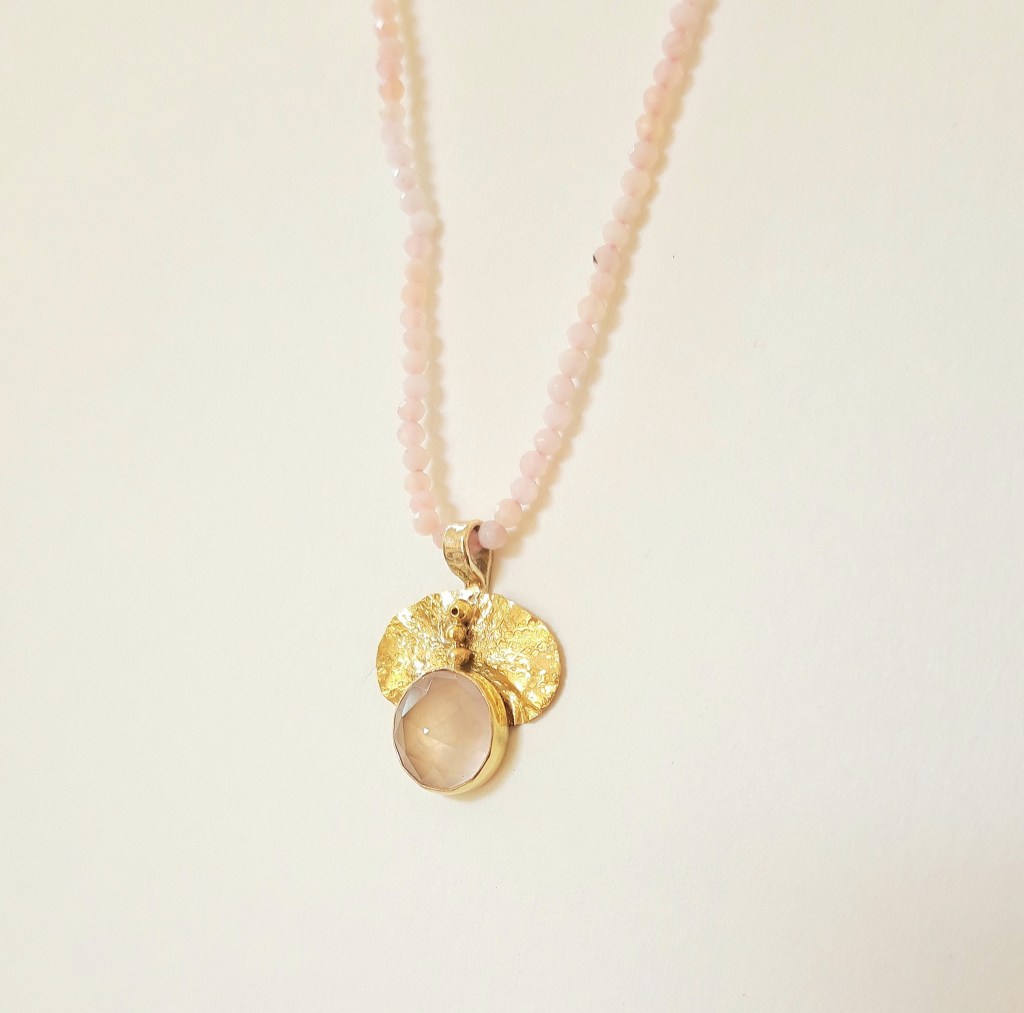 Collier ‘Mycenienne’. Or 24 ct, quartz rose, perles en opale rose.