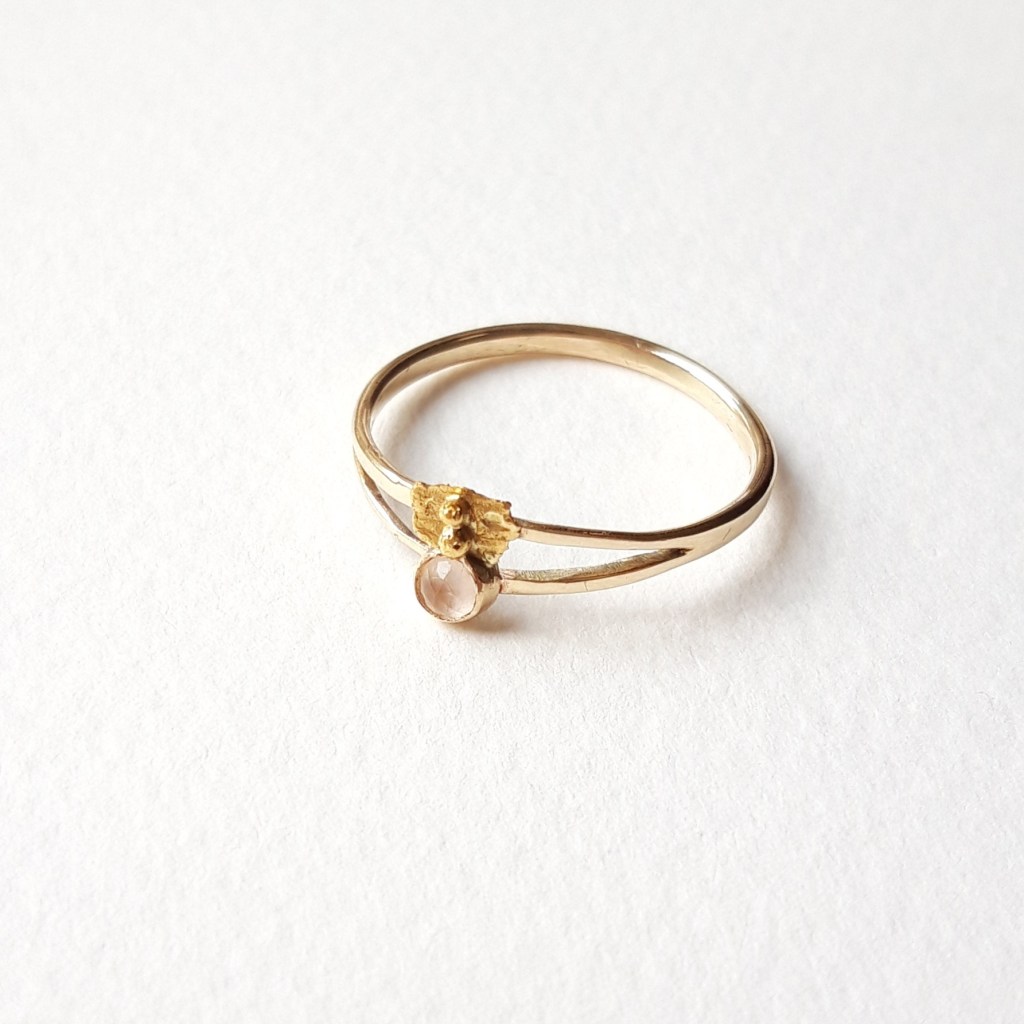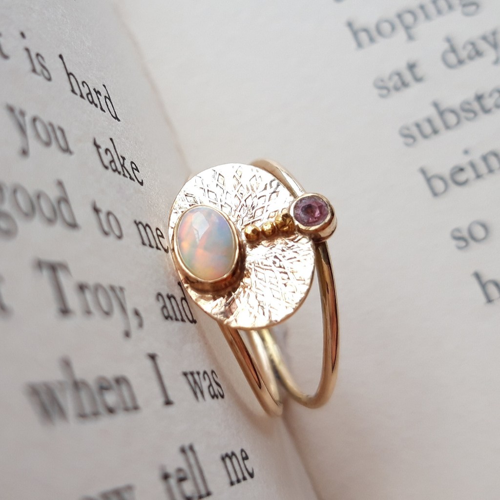 Bague ‘Mycenienne’. Or 9 ct, Pink Tourmaline et opal.
