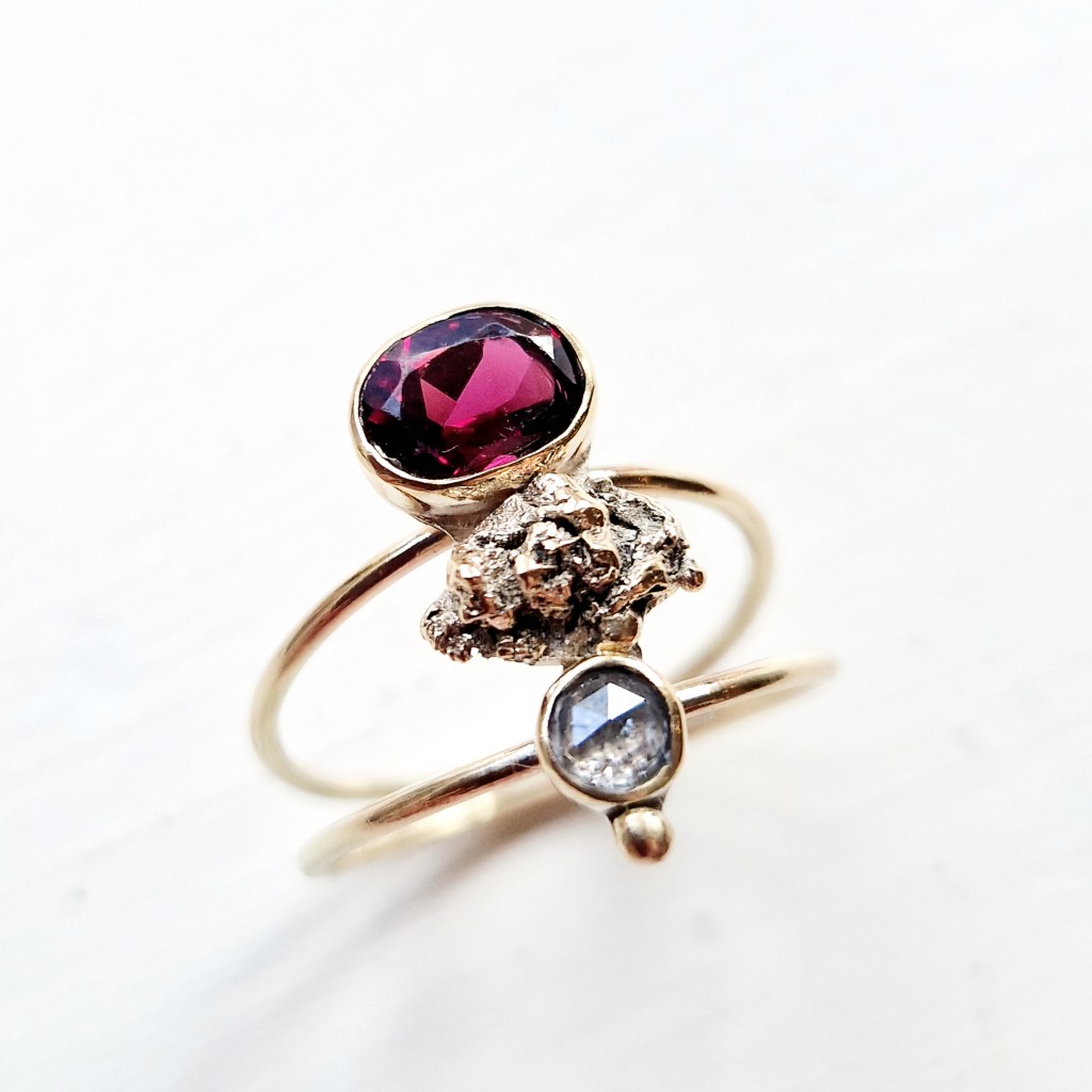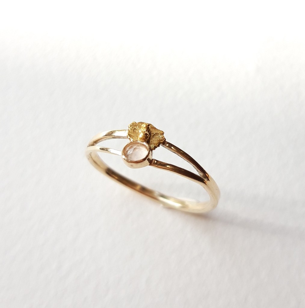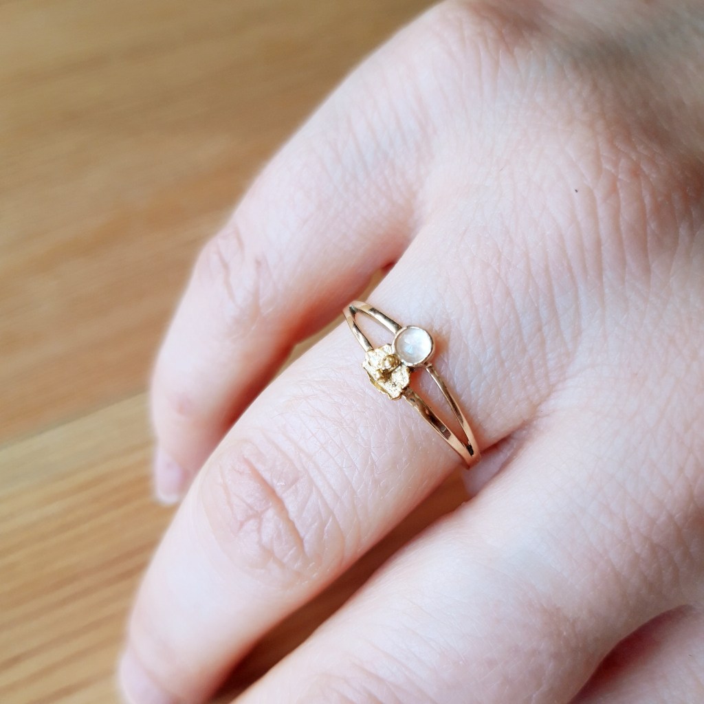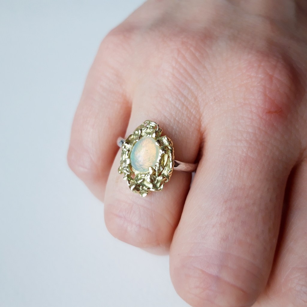 Bague ‘ Unearthed’. Or 18ct et 9ct Pierre de lune.