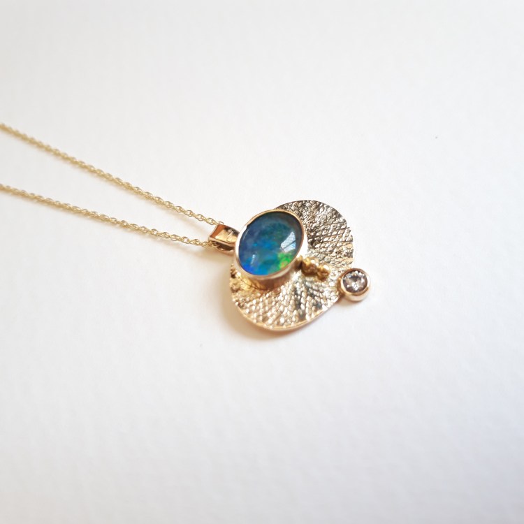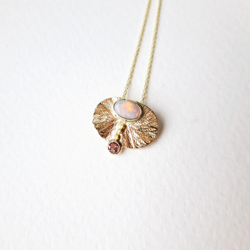 Collier ‘ Mycenienne’. Or 9ct, opale.