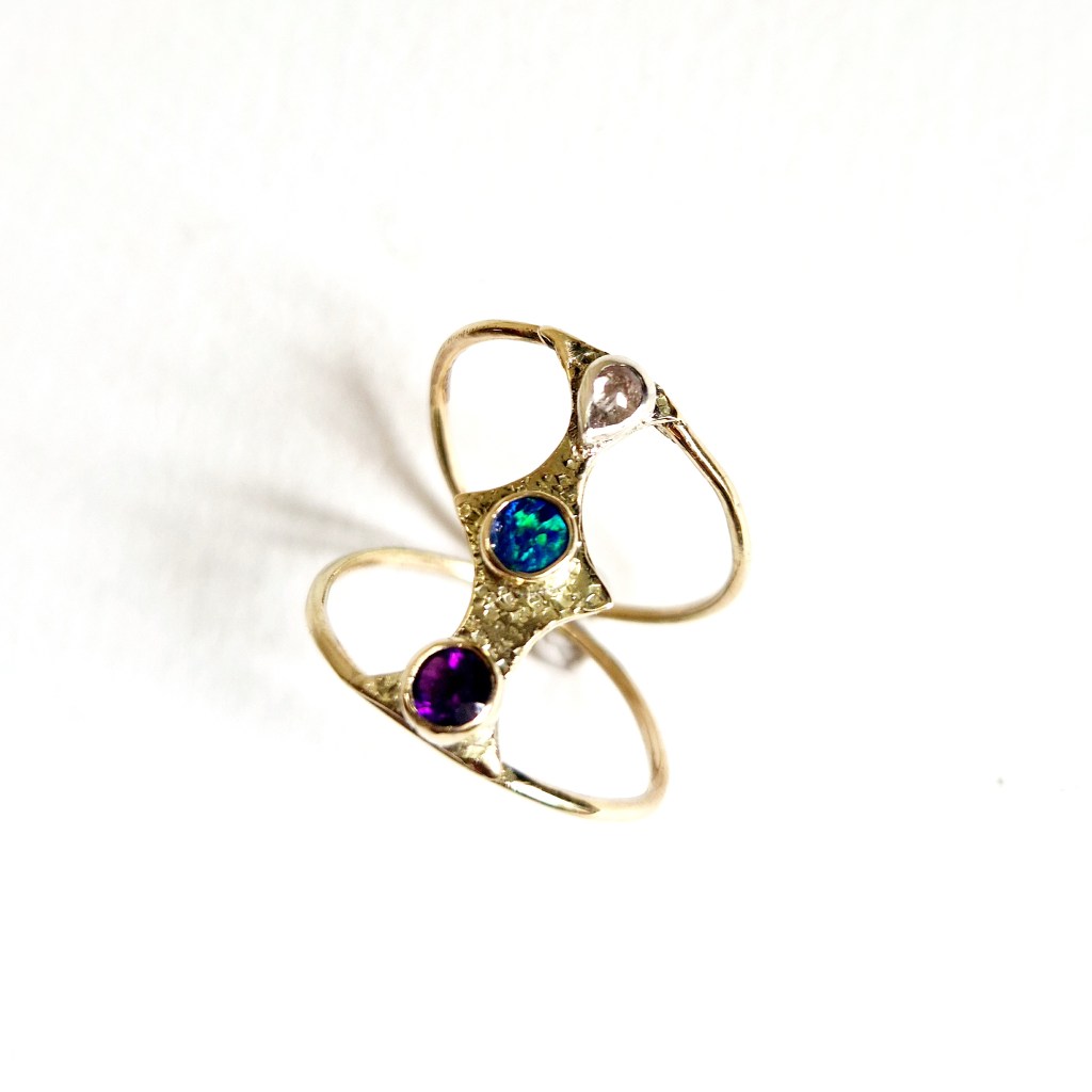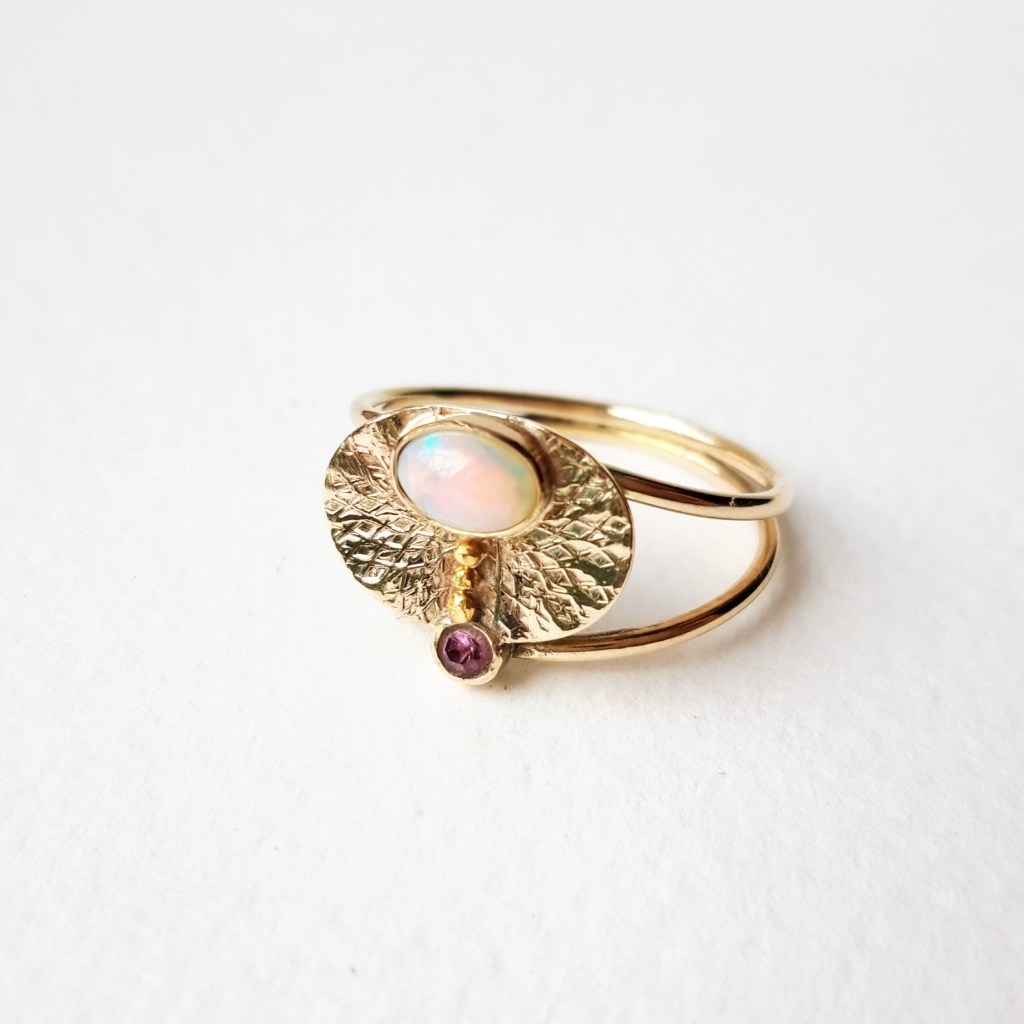 Bague ‘gaia’. Or, opale, amethyste, tourmaline.