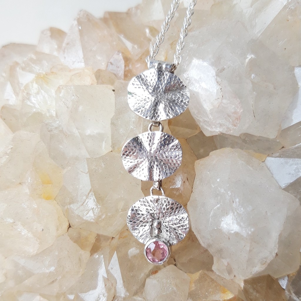 Collier’ Mycenienne’. Argent Tourmaline rose.