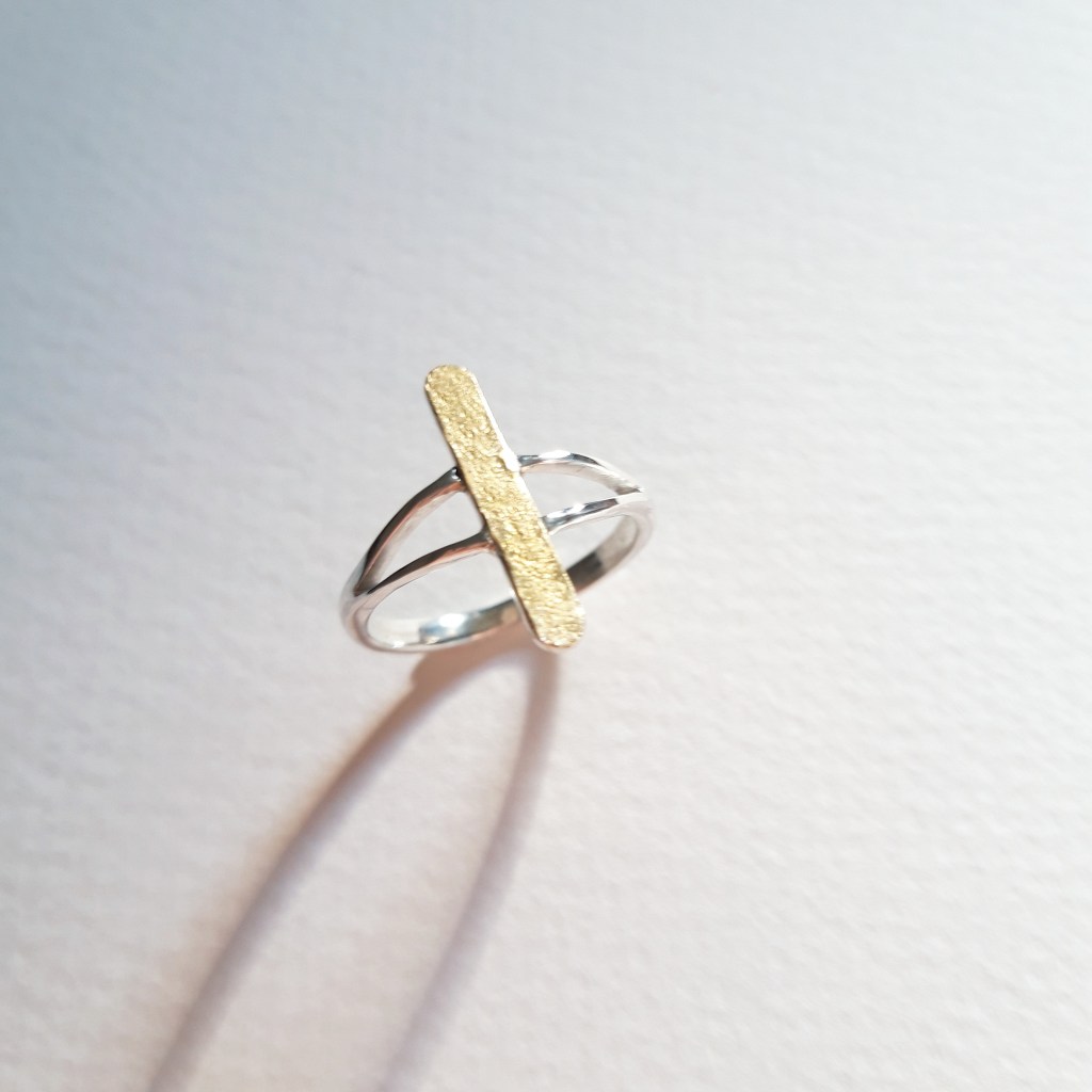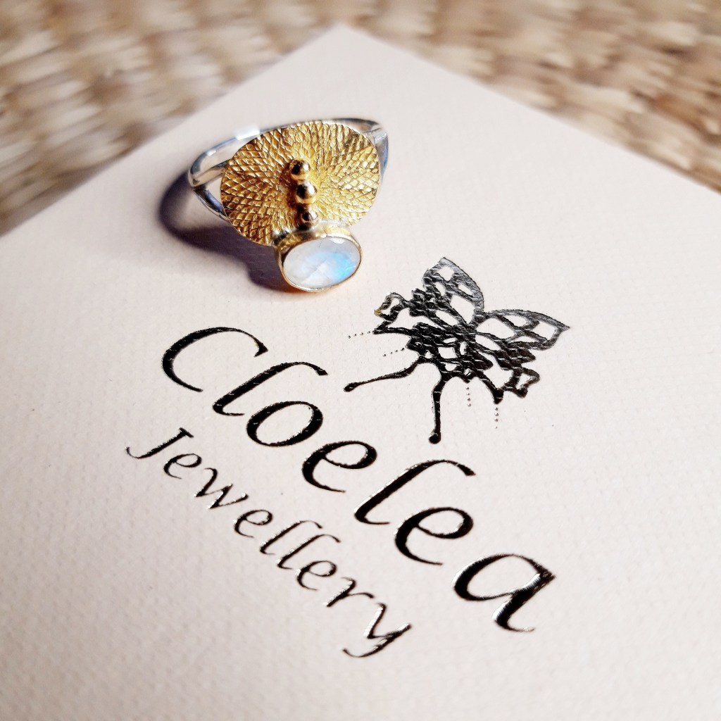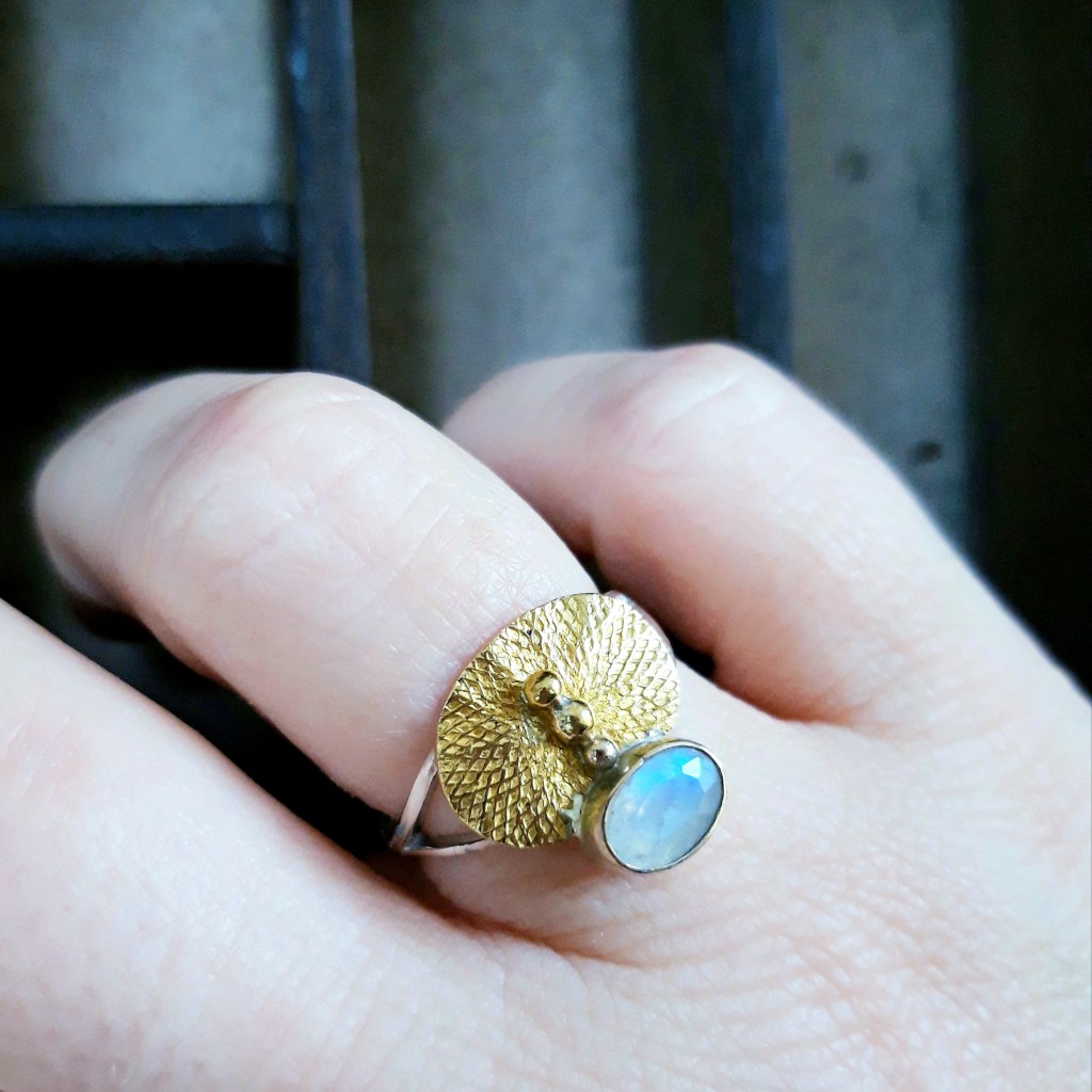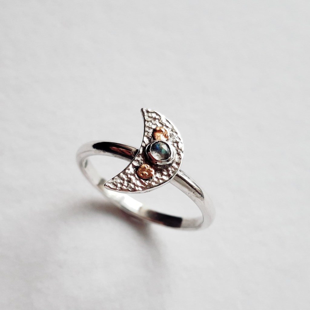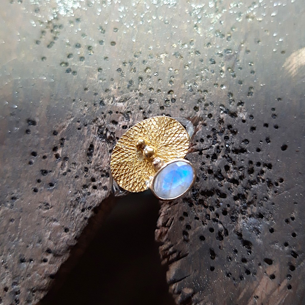 Bague ‘Lune’. Argent, or, pierre de lune.