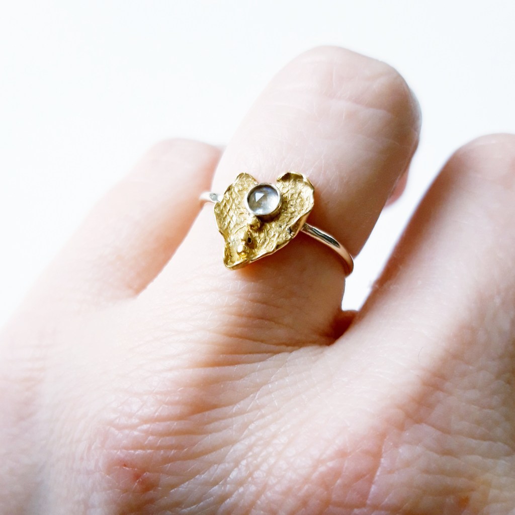 Bague ‘A coeur ouvert’. Or, pierre de lune.