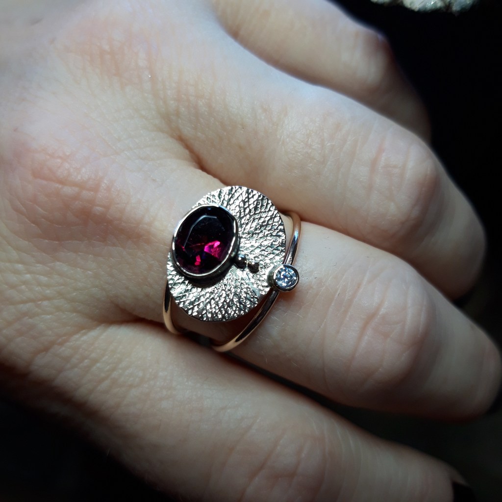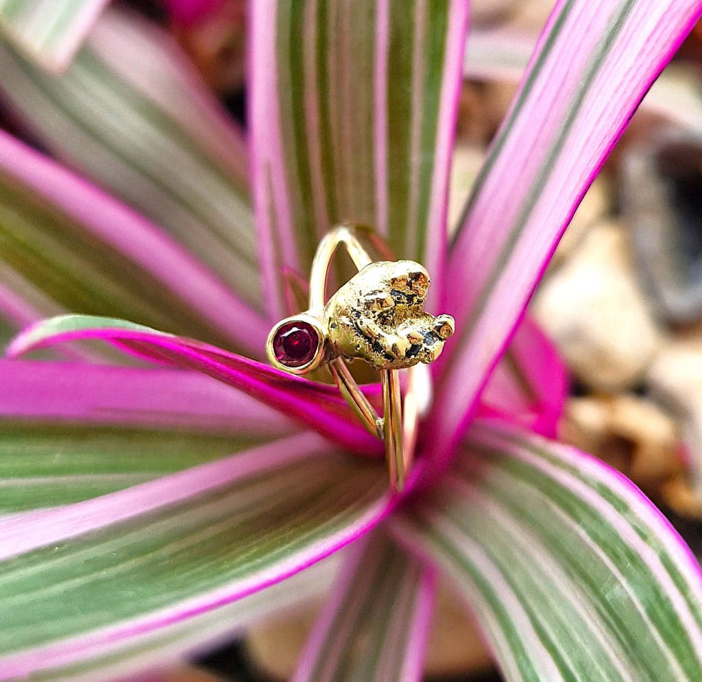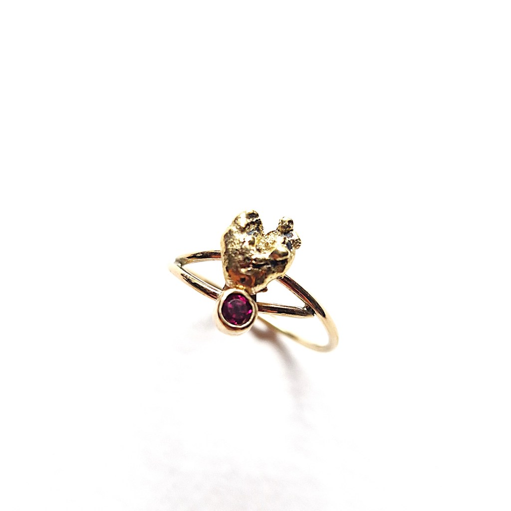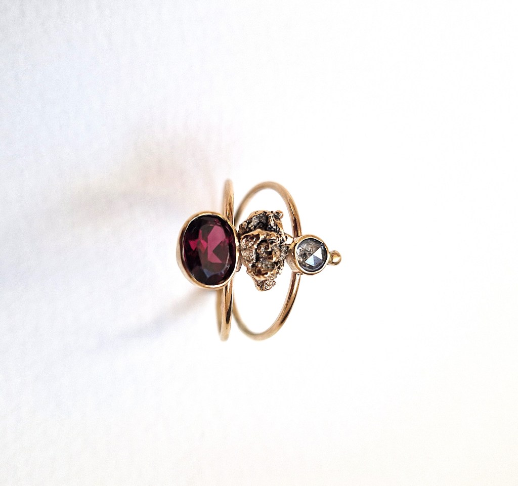Bague ‘Fais-moi fondre’. Or, grenat, diamant.