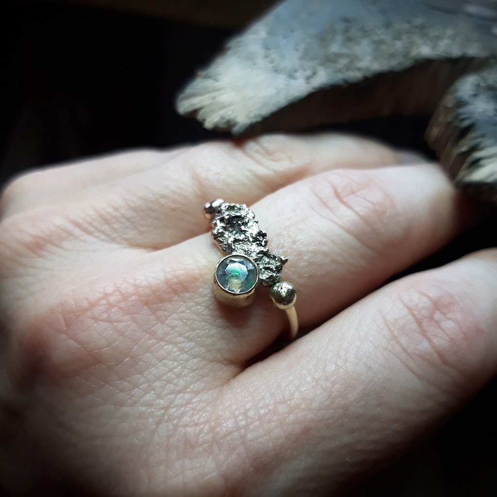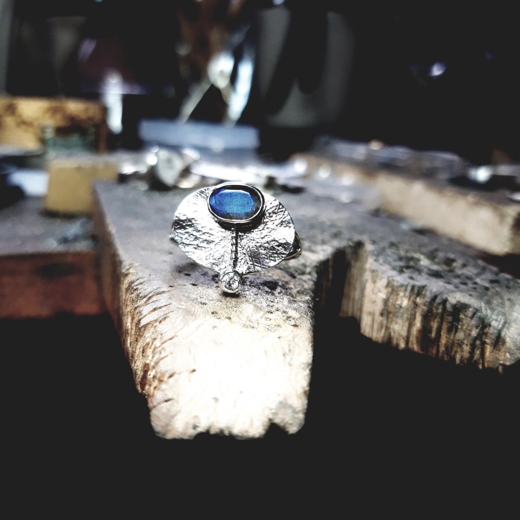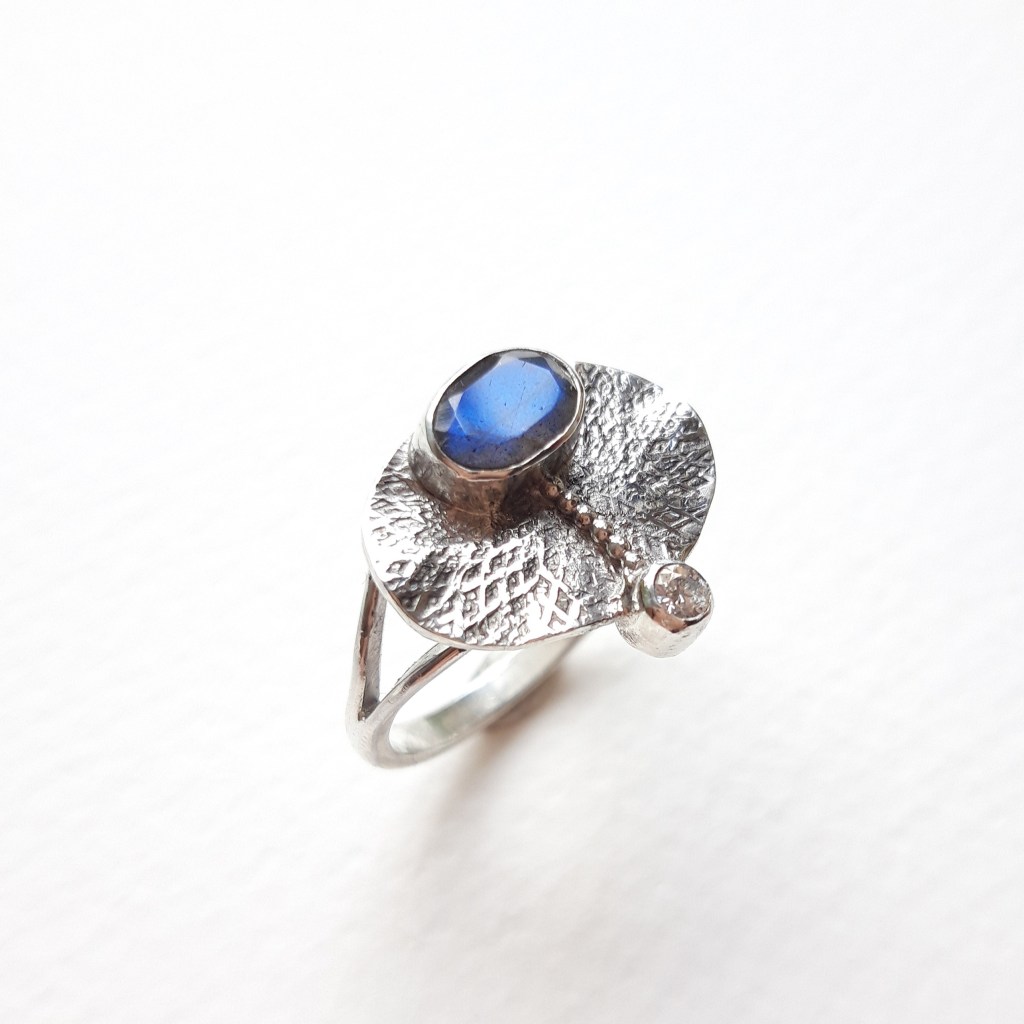 Bague ‘Mycenienne’. Argent, labradorite, diamant.