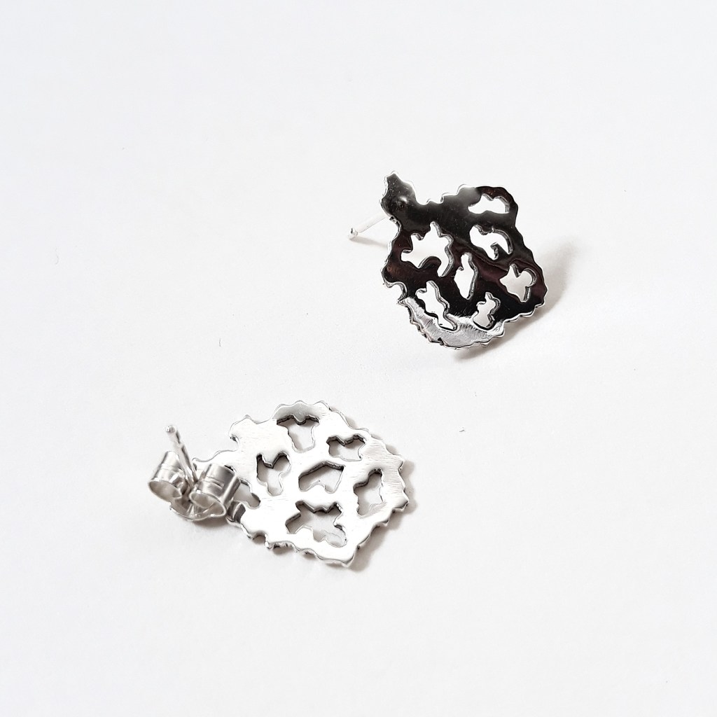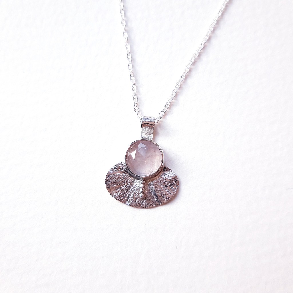 Collier d’oreille ‘Mycenienne’. Argent, quartz rose.