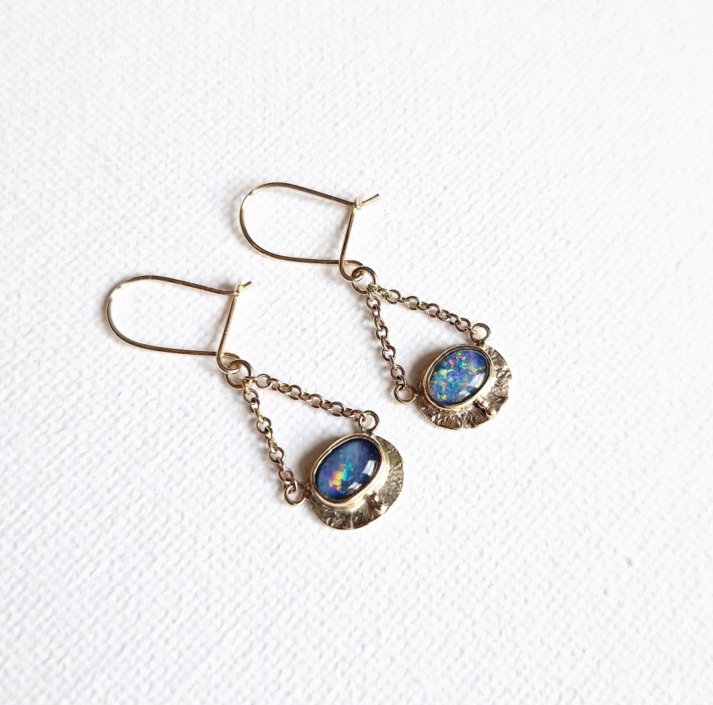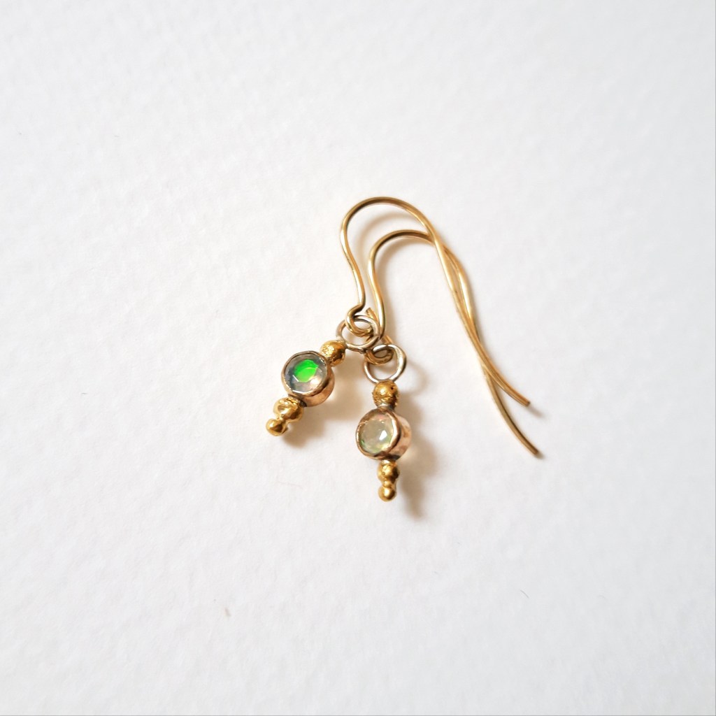Boucles d’oreille ‘Myceniennes’. Or , opale.