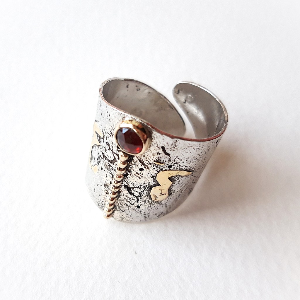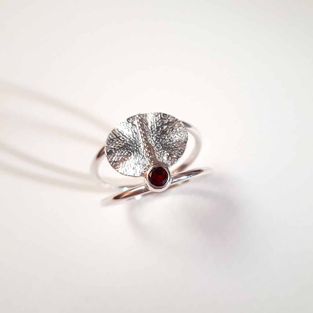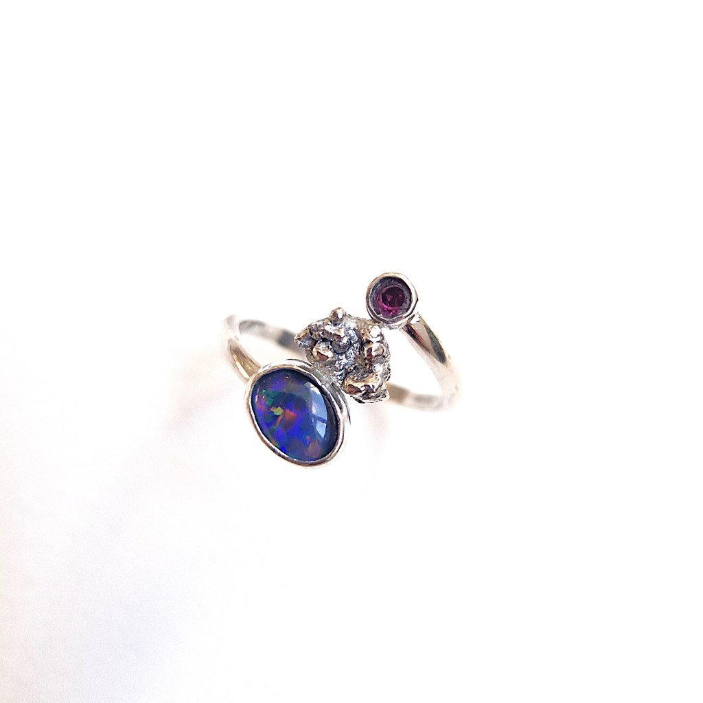 Bague ‘Mycenienne’. Argent, opale, grenat.