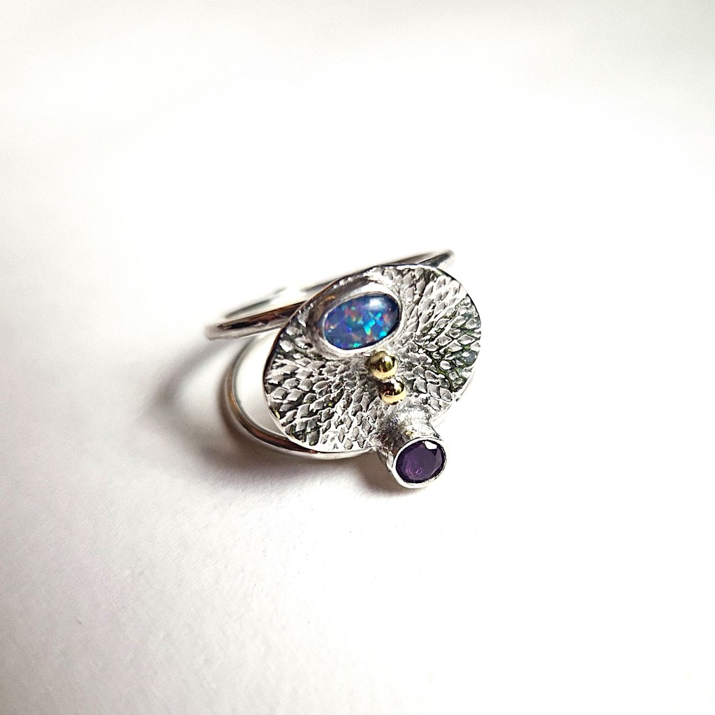 Bague ‘Mycenienne’. Argent, or, opale, amethyste.