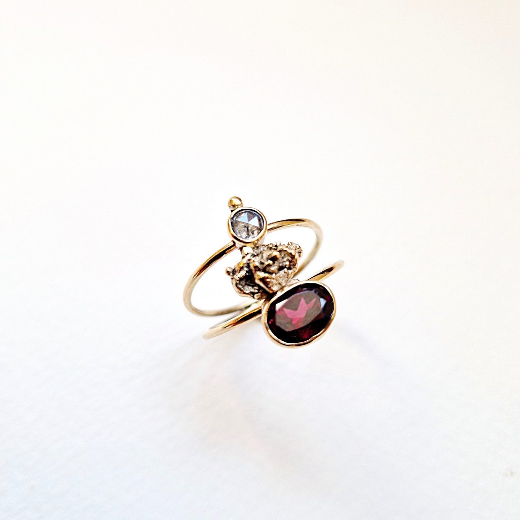 Bague ‘Mycenienne’. Or, grenat, diamant.