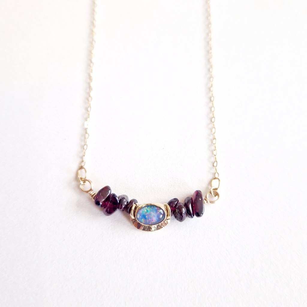 Collier ‘Mycenienne’. Or, opale, grenat.