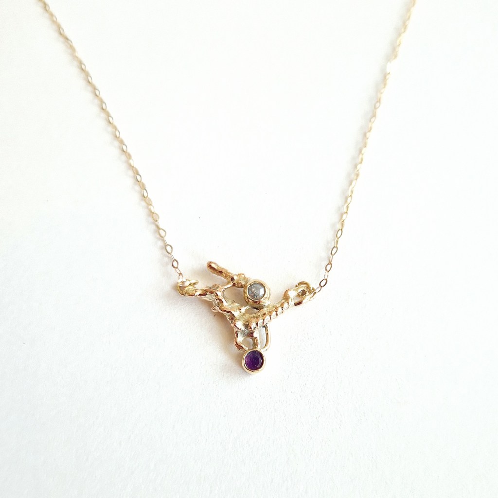 Collier’ Unearthed’. Or 18ct Amethyste.