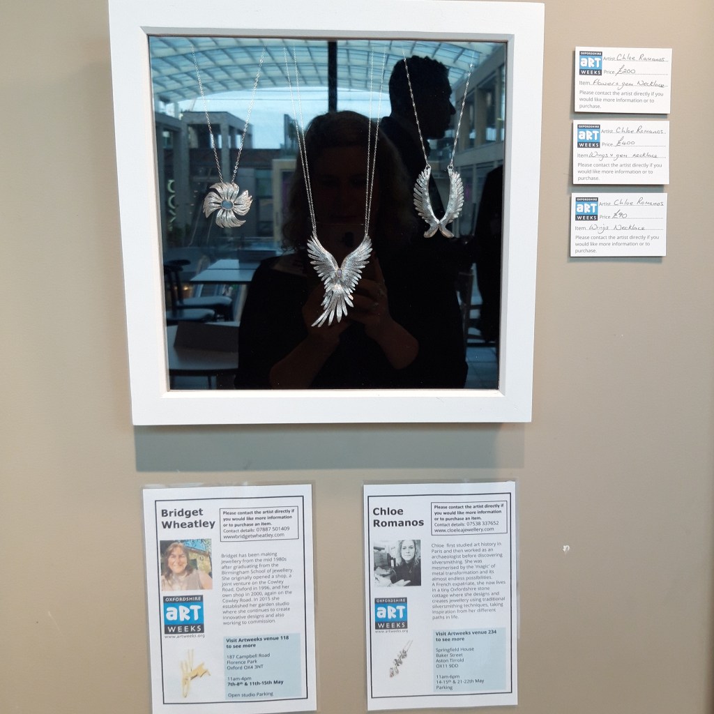 Chloe Romanos is taking part in Oxfordshire Artweeks with her Cloelea Jewellery Collections in the Garden Gallery, Iffley village in Oxford, alongside painter Bridget Farrands and ceramist Sally Dorrity: 8 – 16 May 2021