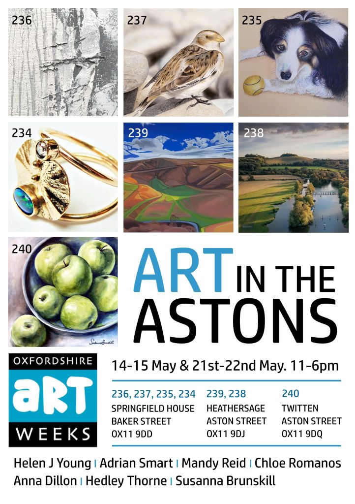 I am taking part in Oxfordshire Artweeks 2022, this year in Aston Tirrold, near Didcot, alongside three other artists: abstract painter, Helen Young, figurative painter, Adrian Smart and pencil artist, Mandy Reid.